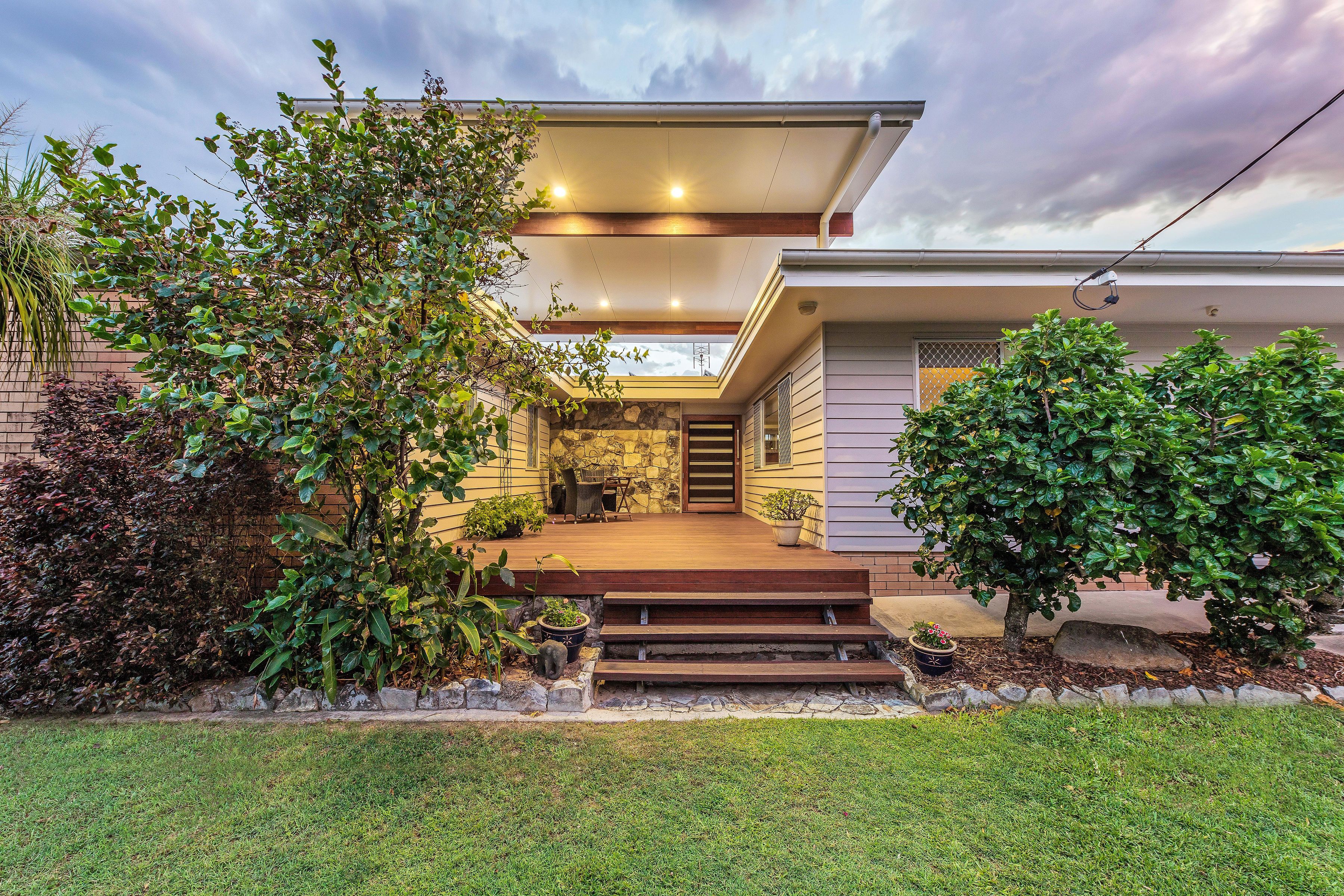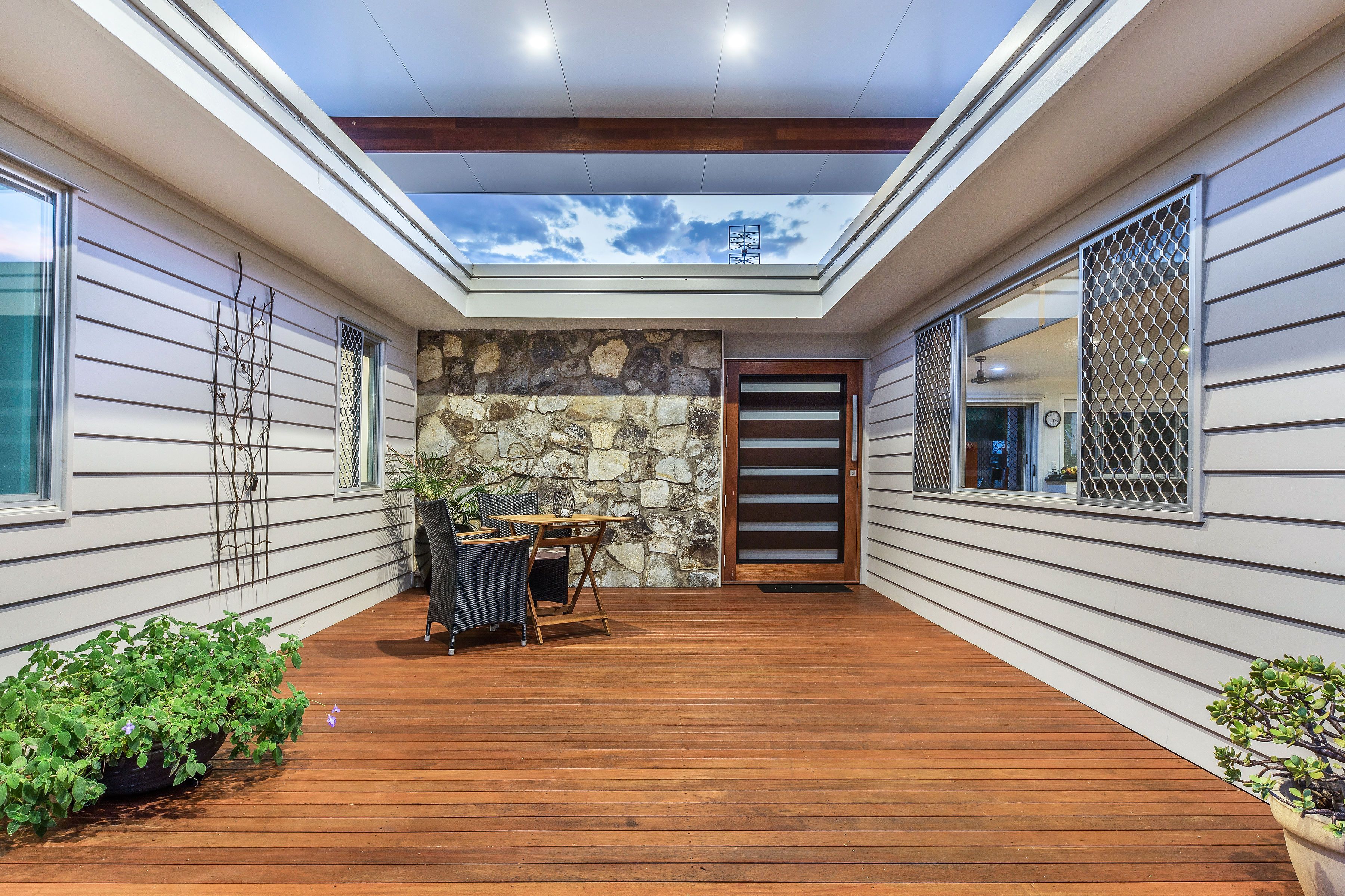 The inviting entrance almost has a Californian Bungalow feel. A lovely stone wall entrance covered by a pitched roof and highlighted by timber decking not only serves as a lovely entrance but could also be yet another entertainment area.