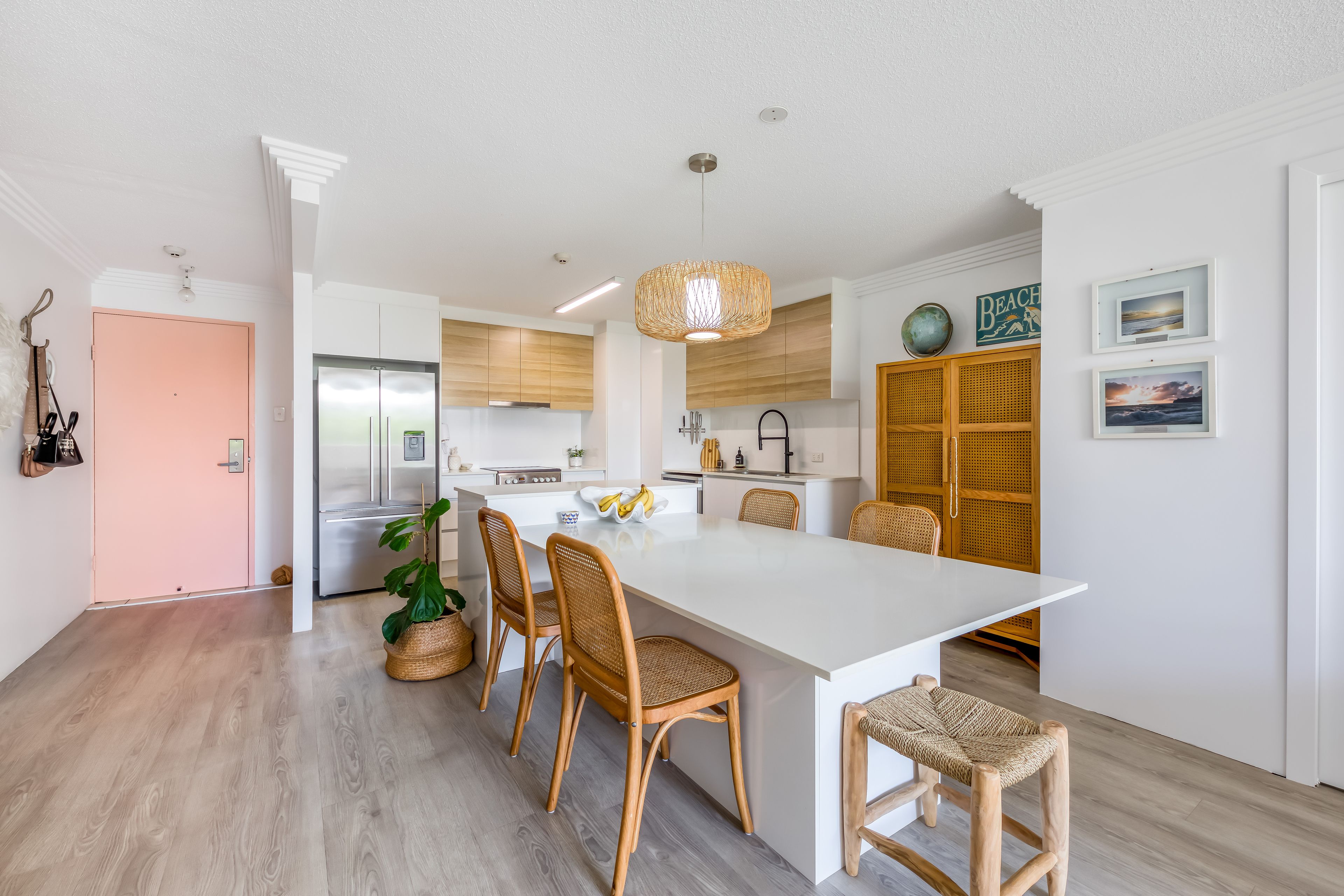 With the perfect due East aspect in Elouera Tower, you'll enjoy a private tennis court, pool, sauna and direct beach access. With glimpses of the surf this clever renovation provides the most practical layout and use of space we've seen in the building. This apartment offers a blue-chip investment and potential home away from home to enjoy these mild Queensland winters and sun filled summers. The balcony is ideal for both relaxing and watching the world go by with family and friends. Inside you will find a great level of detail with nothing missed in the comprehensive renovation. The owners are proud to offer an apartment that presents as new with nothing left to do.