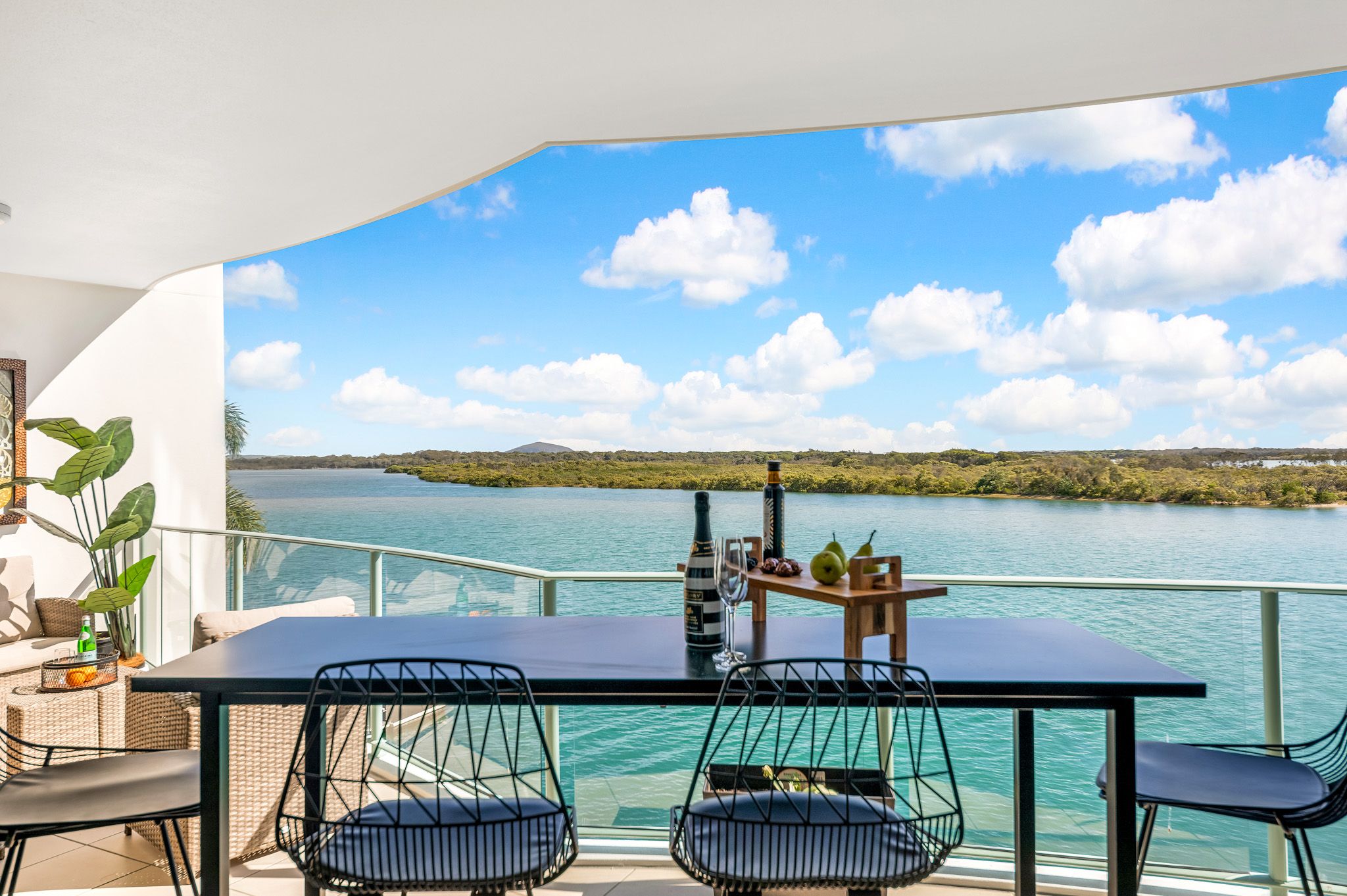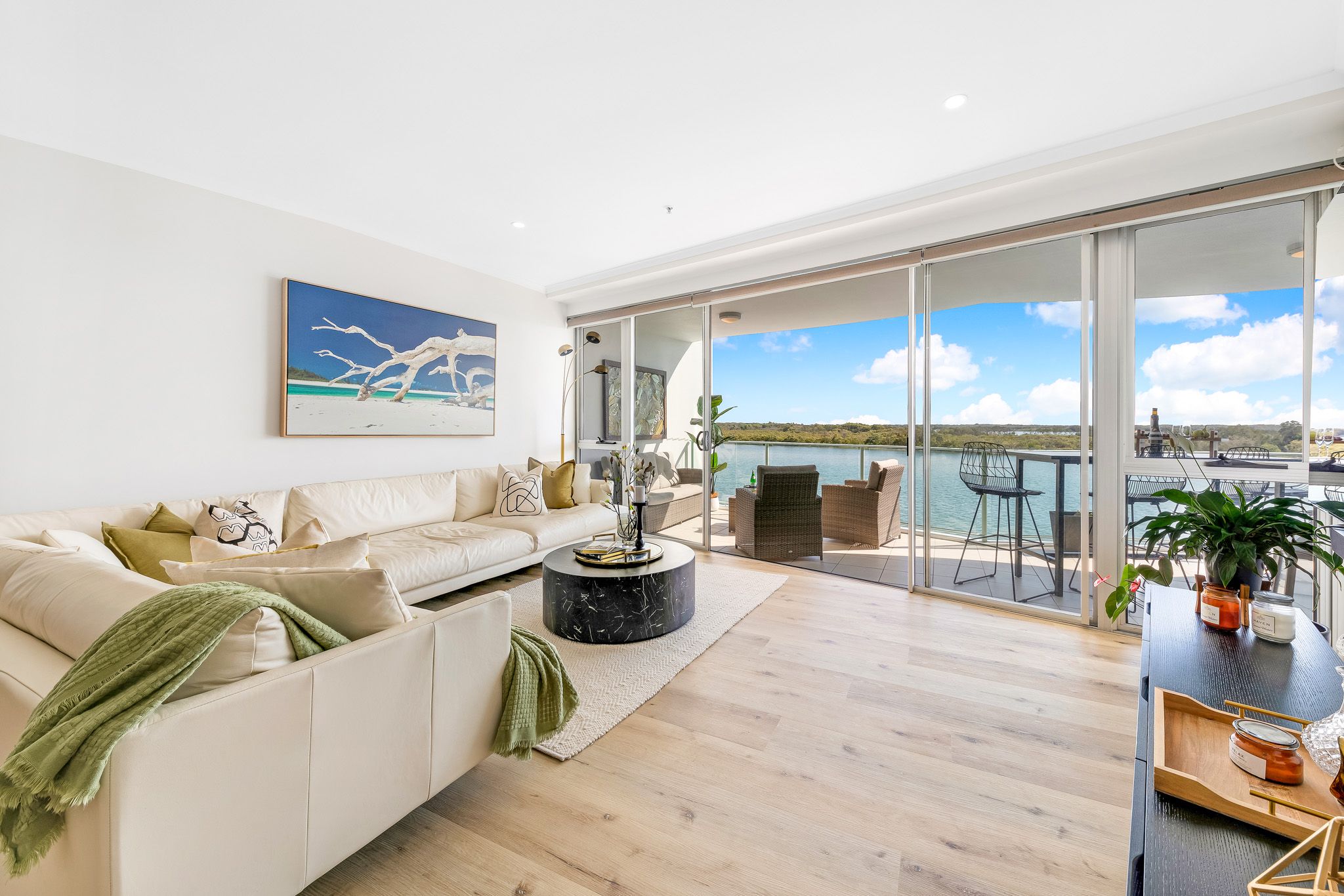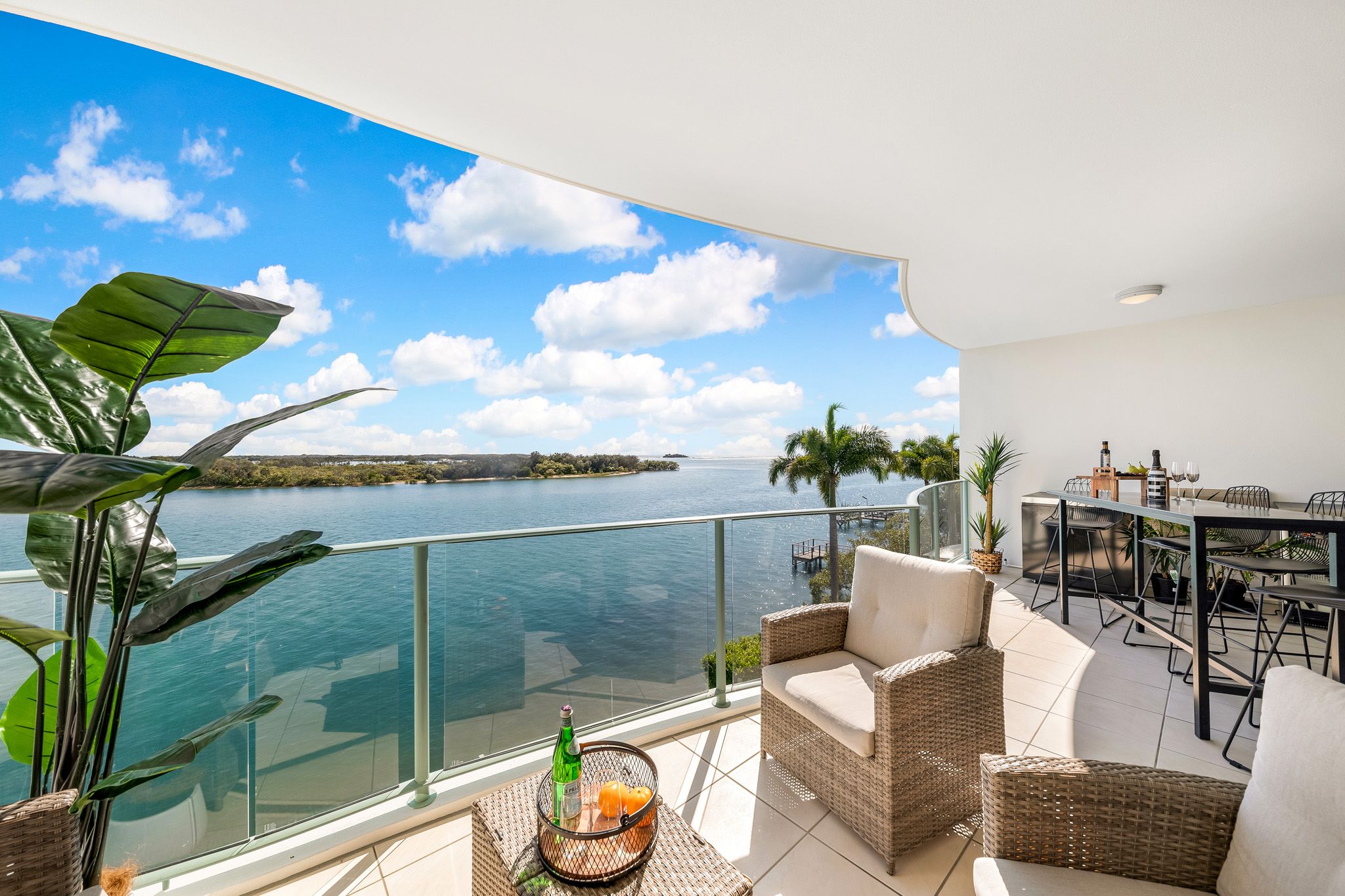 Recently renovated to an immaculate standard, this unit, located in the centre of the building, provides optimal northern exposure, a constant flow of coastal breezes, and complete privacy. The contemporary design features fully renovated bathrooms and a kitchen equipped with top-of-the-line appliances including a wine fridge, and new stone bench-tops. The addition of timber flooring enhances the modern design and comfort of the unit. Enjoy a comfortable living experience with ducted air conditioning. Take in the stunning scenery of the river, greenery, and sandbanks from the privacy of your central location on the second floor. The open plan living area allows for effortless entertaining and relaxation.