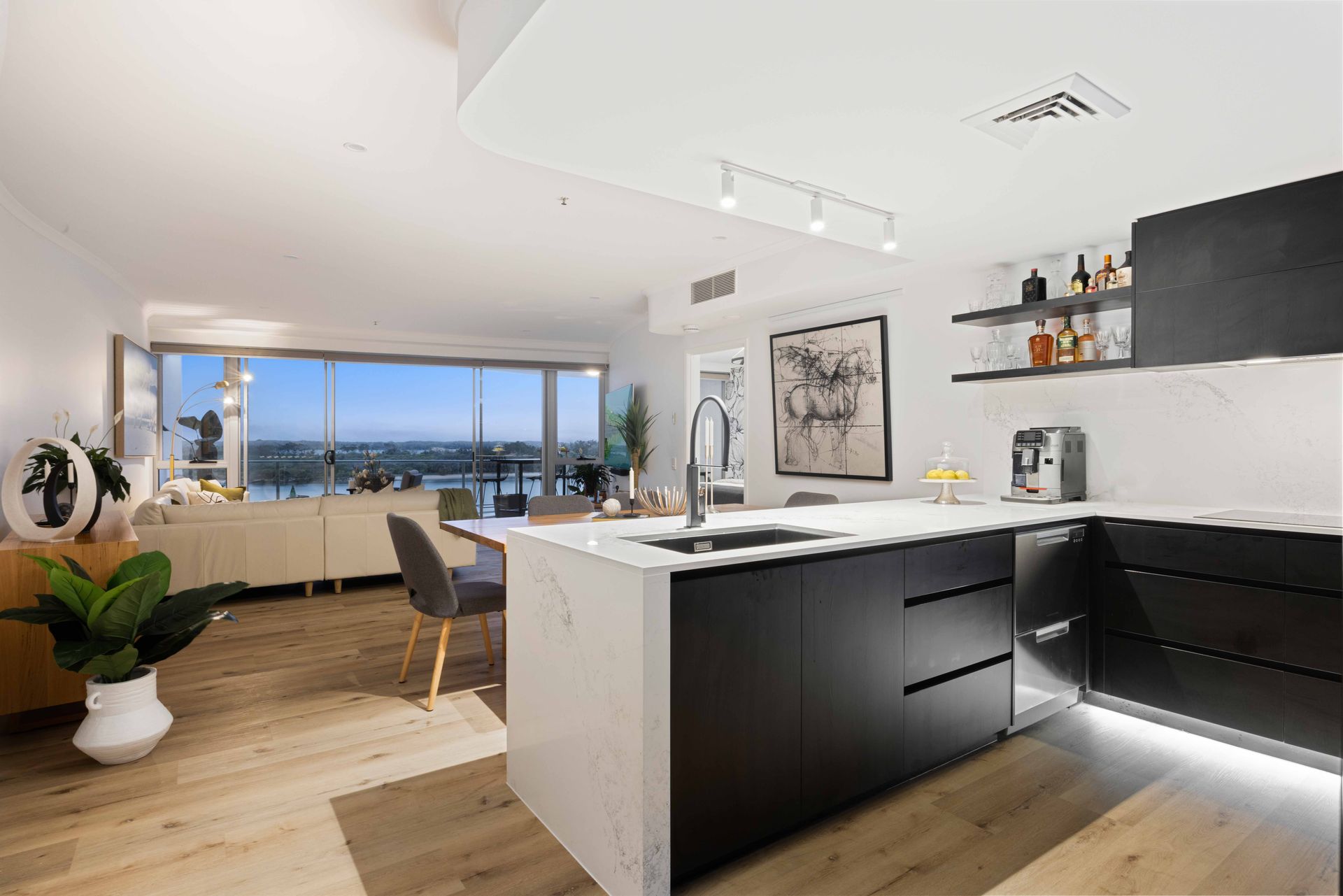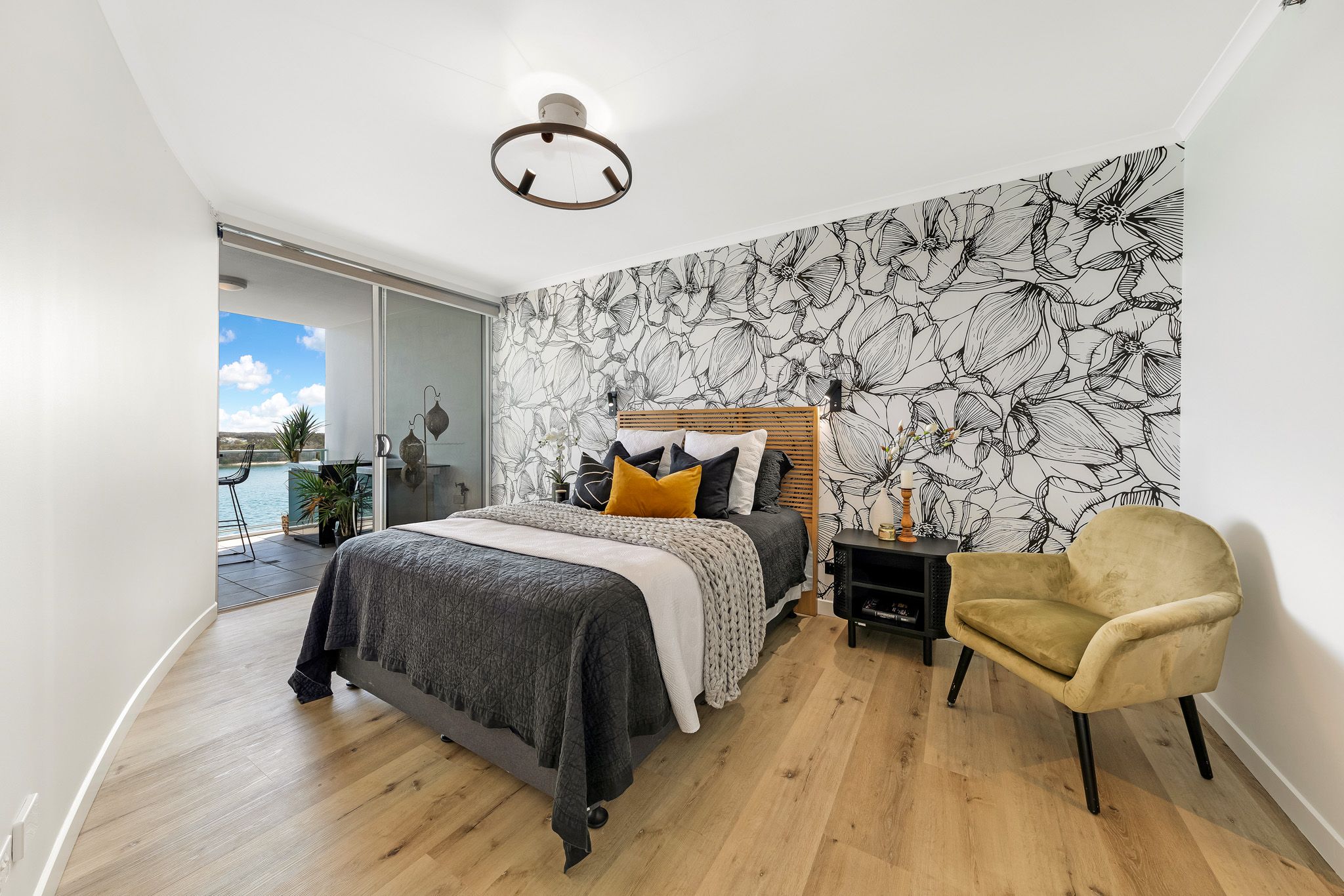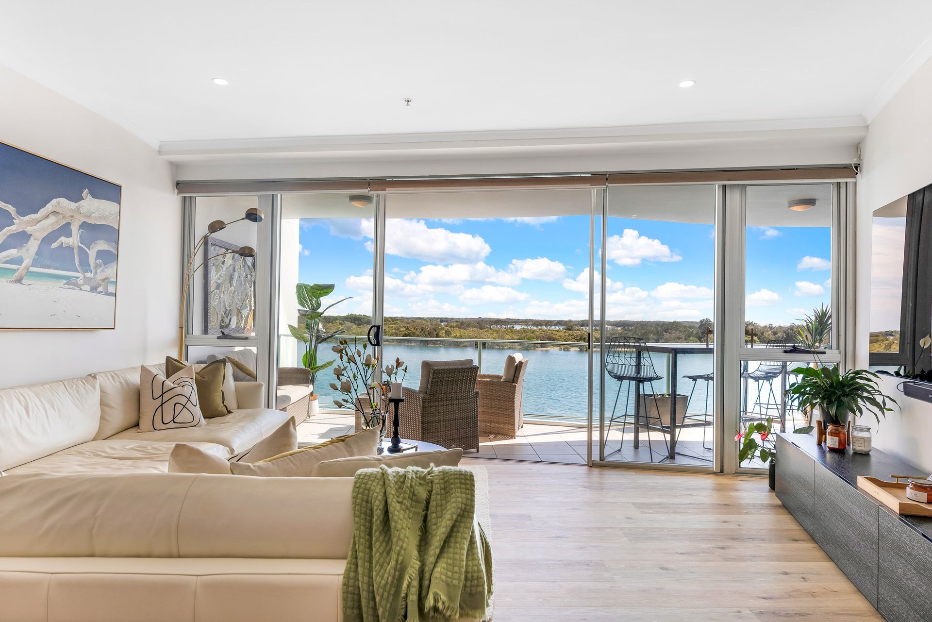 Recently renovated to an immaculate standard, this unit, located in the centre of the building, provides optimal northern exposure, a constant flow of coastal breezes, and complete privacy. The contemporary design features fully renovated bathrooms and a kitchen equipped with top-of-the-line appliances including a wine fridge, and new stone bench-tops. The addition of timber flooring enhances the modern design and comfort of the unit. Enjoy a comfortable living experience with ducted air conditioning. Take in the stunning scenery of the river, greenery, and sandbanks from the privacy of your central location on the second floor. The open plan living area allows for effortless entertaining and relaxation.