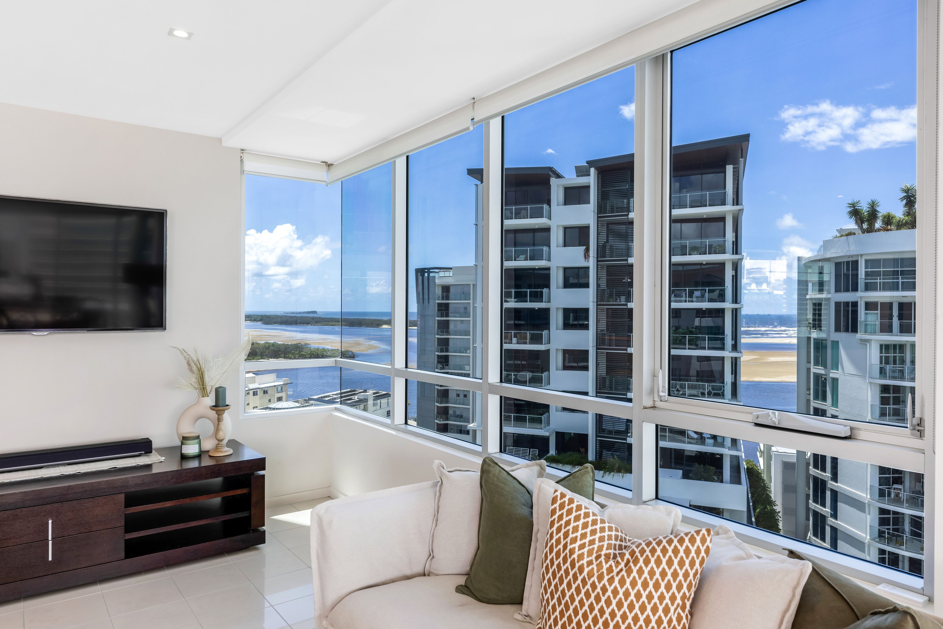 Feel on top of the world as you look out over the buzz taking place below. From the 10th floor of the iconic M1 building, you can take in the moving parts of Maroochydore while also feeling the serenity that comes from watching the waves crash in the distance and the gentle ebb and flow of the nearby river.