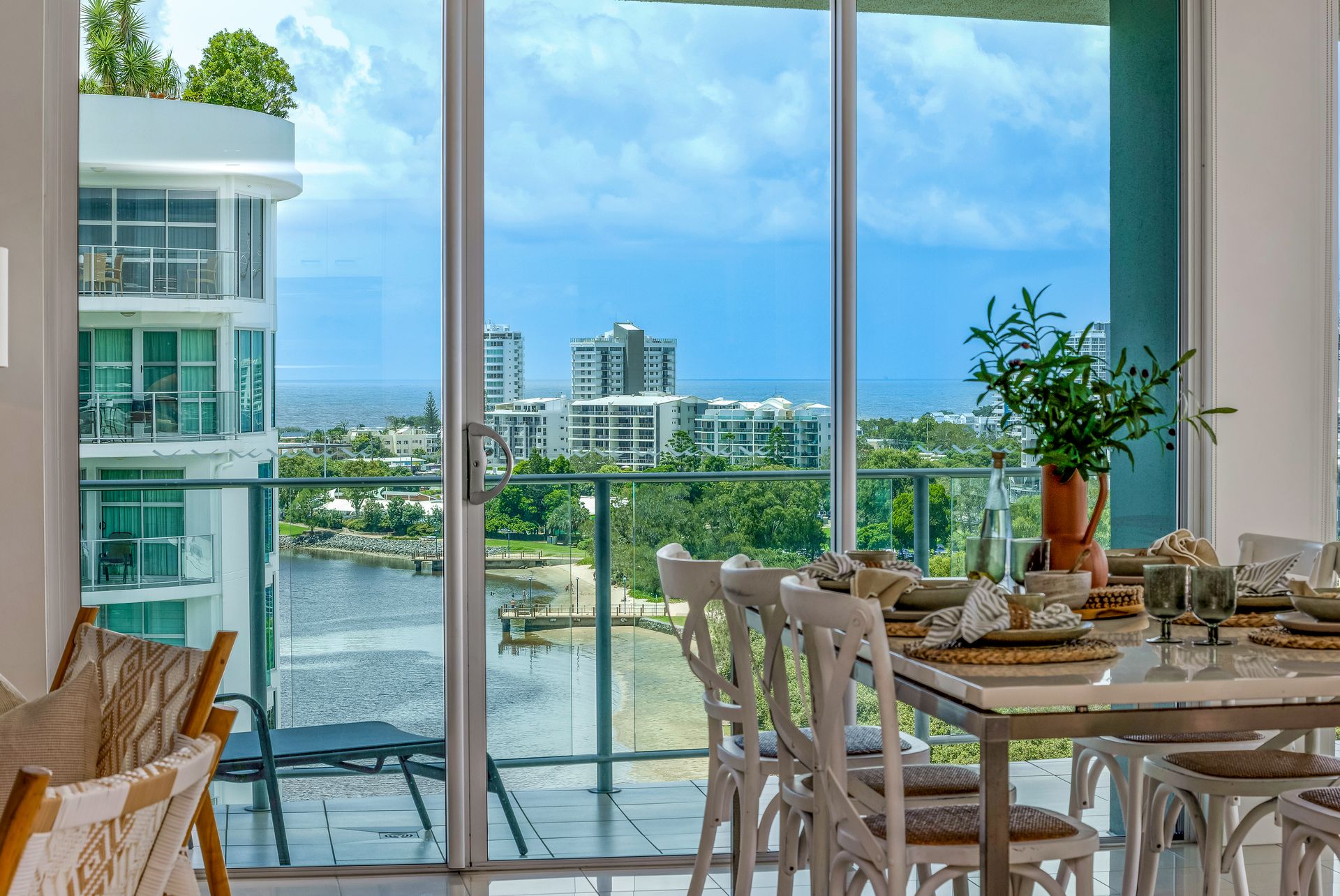 As paddle boarders meander gently through the Maroochy River waterways, enjoy the ever changing view of the sands shifting with the tide. Your view from this three-bedroom, two-bathroom apartment will never tire as the open-plan layout feels like it extends beyond the balcony's glass balustrade.