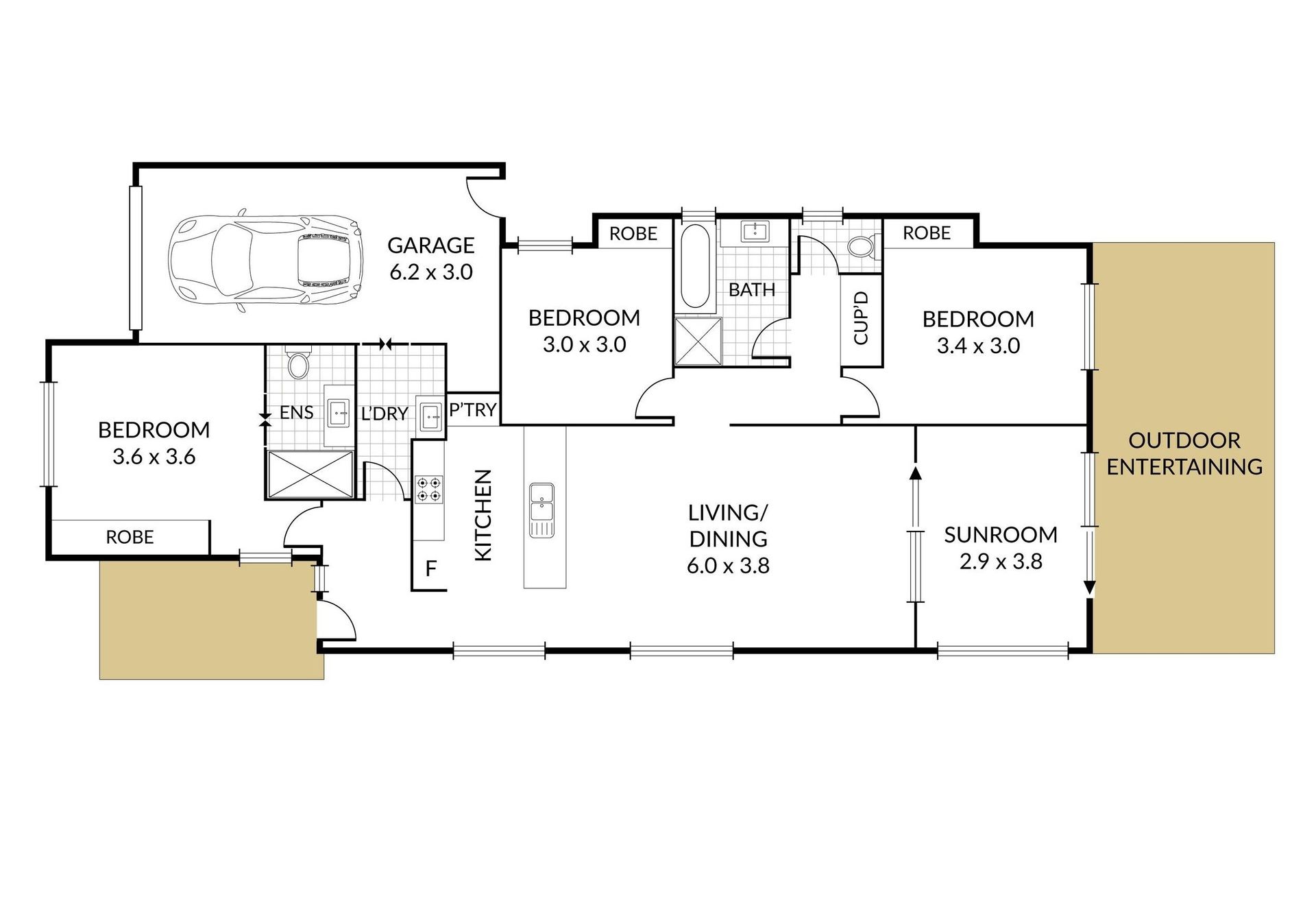 • Three bedrooms with ceiling fans and built in wardrobes, two bedrooms with air conditioning • Spaciously sized master bedroom with private en-suite • Main bathroom with both bathtub and shower • Open plan kitchen equipped with quality appliances including dishwasher • Spacious living/dining area with air conditioning and ceiling fan • Additional living area with ceiling fan and direct access to outdoor entertainment area • Generously sized and fully covered outdoor entertainment area • Nestled on an immaculately designed backyard • Single car garage with two additional off street parking spaces • Solar hot water system along with solar panel facilities • Crimsafe security doors and screens throughout the home