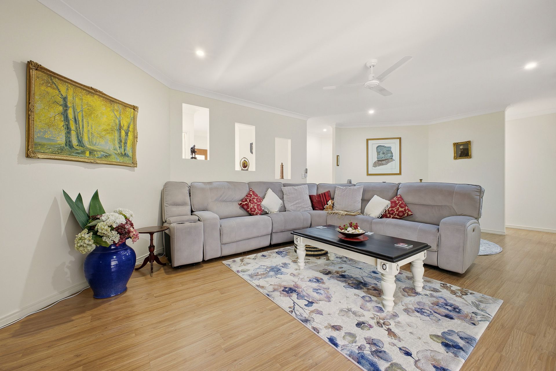 The home includes a spacious main living area with air conditioning and a ceiling fan, flowing out to a covered deck, perfect for relaxing or entertaining. There is also a second good-sized living area with a ceiling fan, providing plenty of space for the whole family.