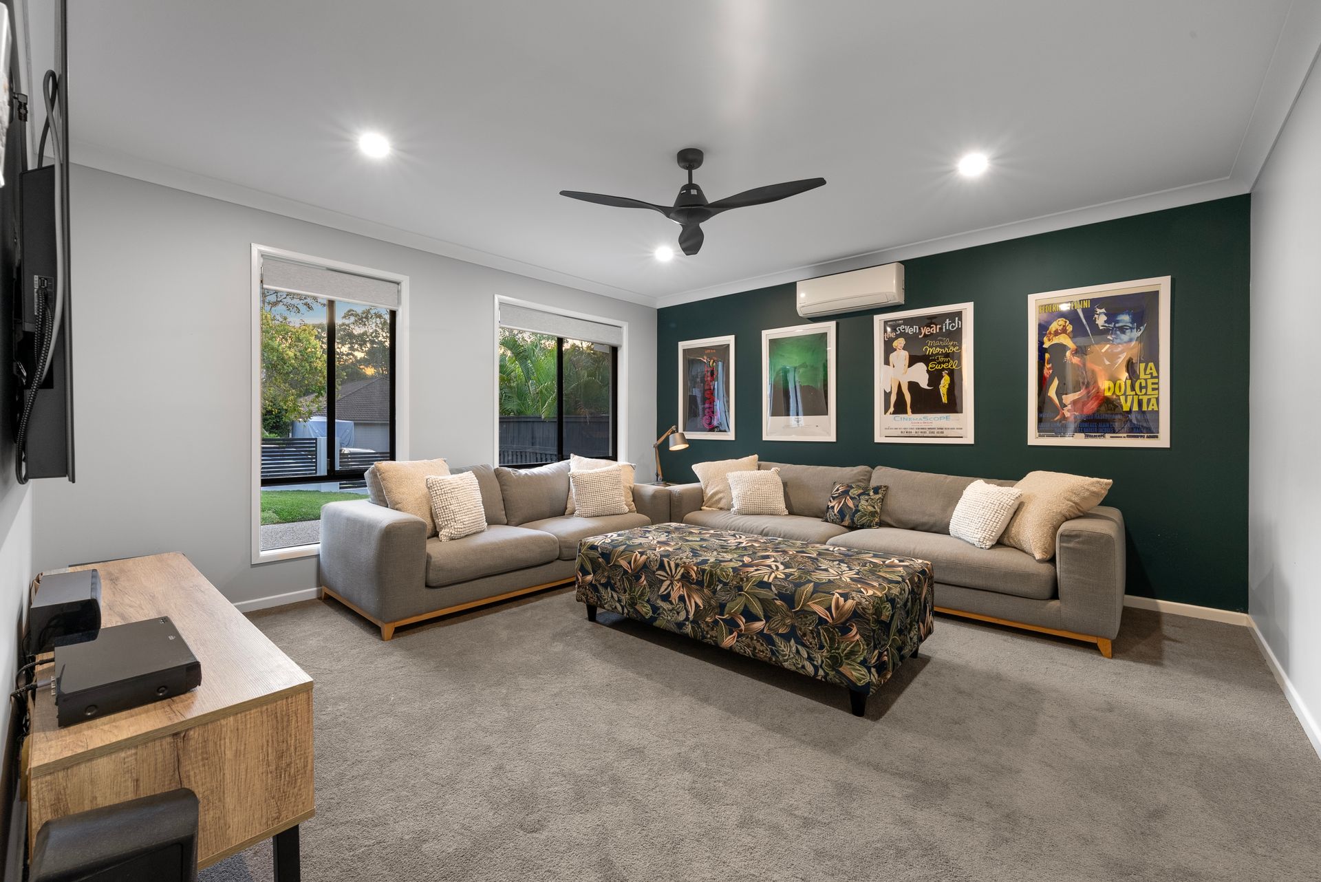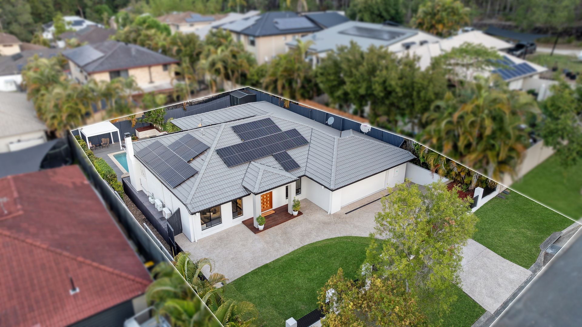 Nestled in the tranquil heart of Maudsland, 12 McGuire Court is a luxurious sanctuary that seamlessly blends elegance and comfort. Situated on a no-through road, this property guarantees peace and privacy. The striking façade and fully electronic front gate create a grand entrance, leading to a sprawling front yard that features a kid-friendly space for play, enhanced by a harmonious mix of lush grass and sleek concrete. Additionally, the home boasts a 13.3 kW solar system-the largest available-ensuring energy efficiency and sustainability for modern living.