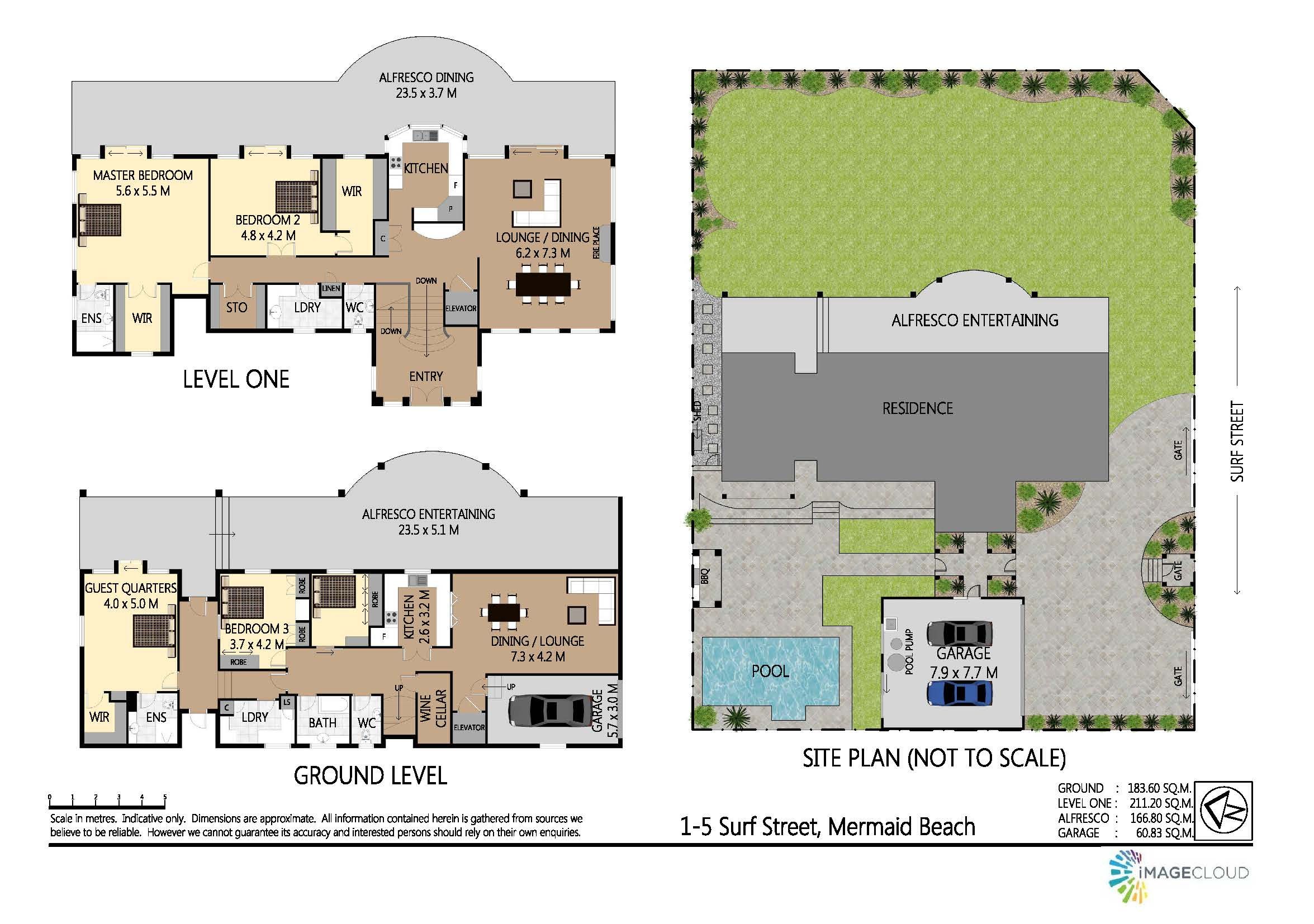 - Approx. 32m absolute beach frontage - 1,222m2 block, 3 titles, corner position - 5 bedroom, 4 bathroom, 2 kitchens - All neighbours residential low rise - Extensive views to Coolangatta - Full property memorandum available