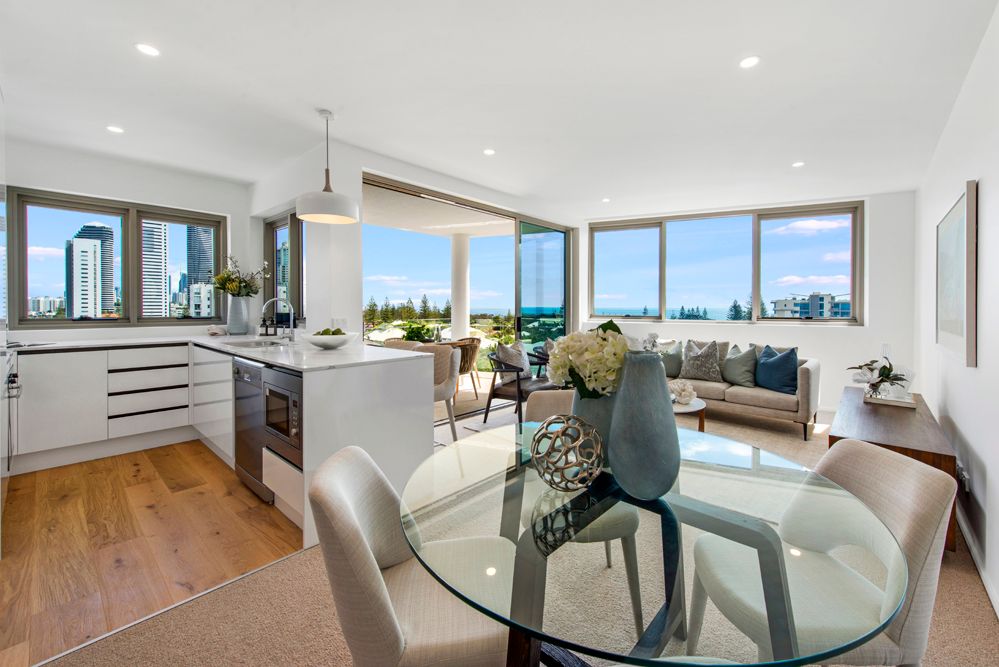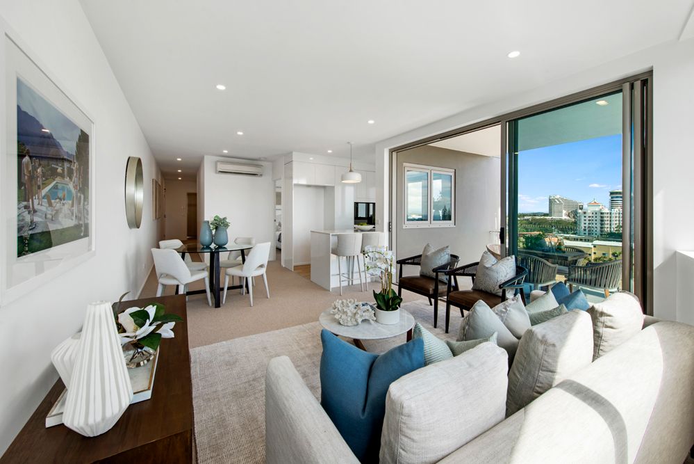 Residents can enjoy an easy stroll to patrolled beaches, Pacific Fair Shopping Centre, Star Casino, light rail station, as well as the dining and entertainment hub of Broadbeach.