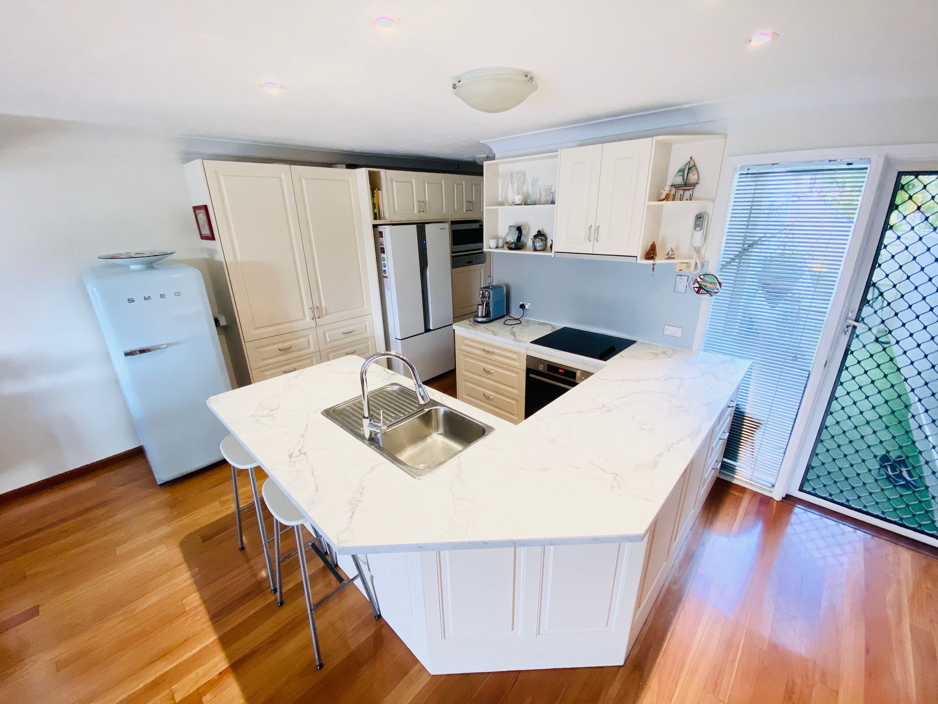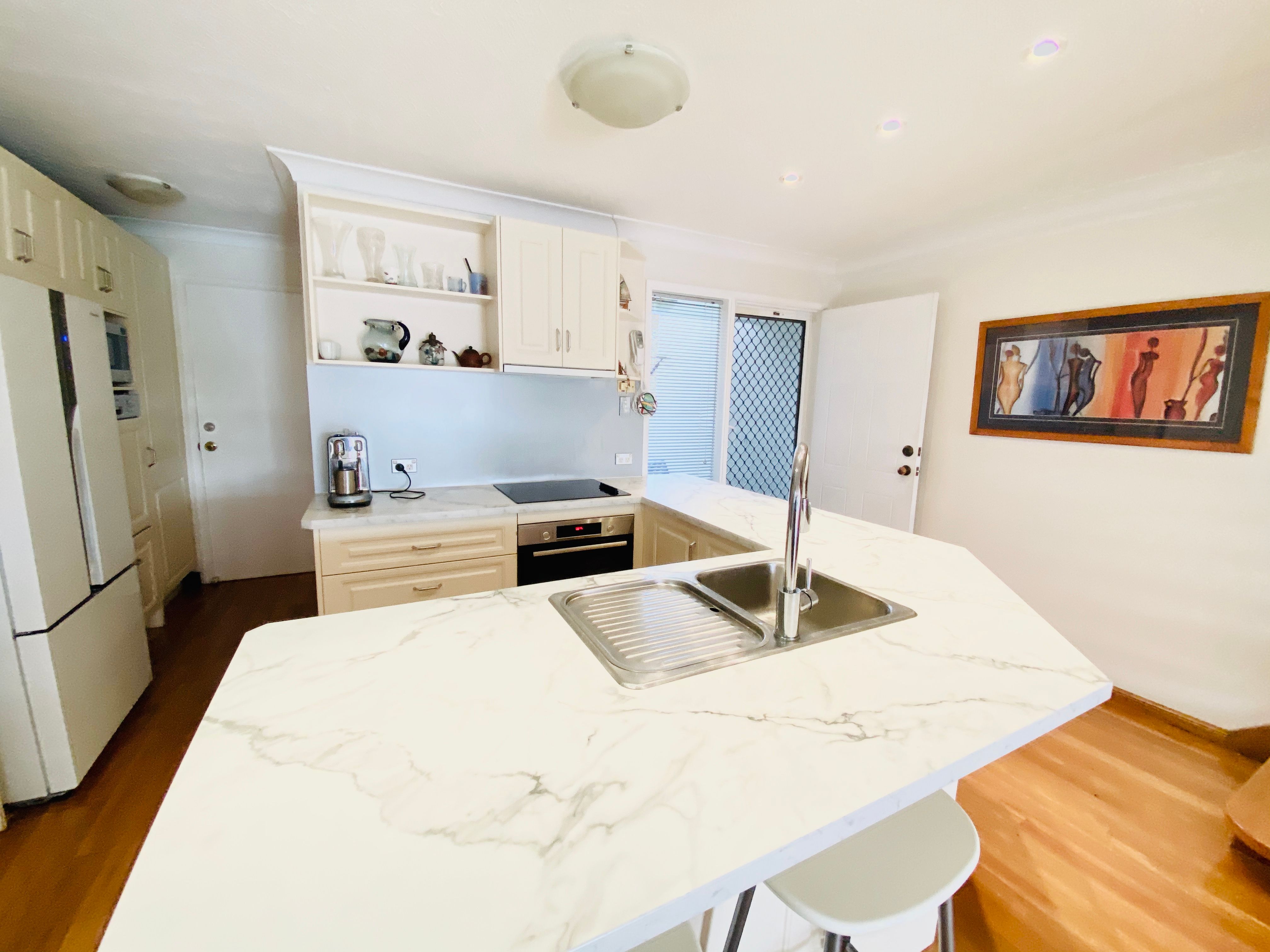 The extremely functional kitchen is adorned with ample cabinetry, oven, electric cook top and dishwasher. On the top floor, three bedrooms, two bathrooms (master ensuited) and built-in robes allow for everyone to spread out.