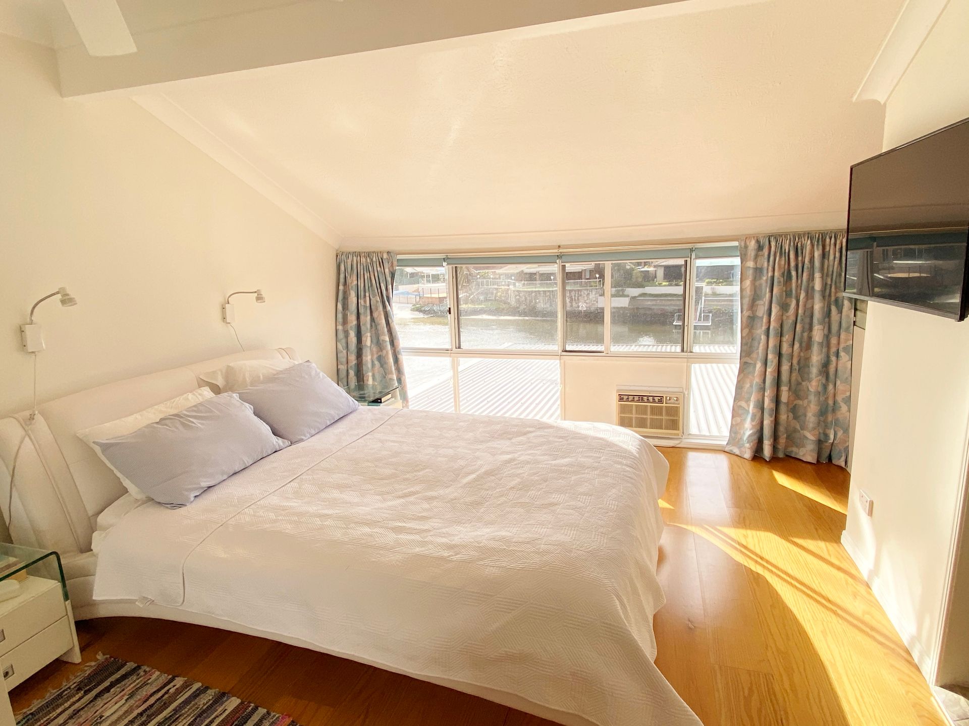 The ground floor hosts the air conditioned lounge and dining area with sliding glass doors to a peaceful waterfront patio, a recently refurbished kitchen, powder room and single lock up garage.