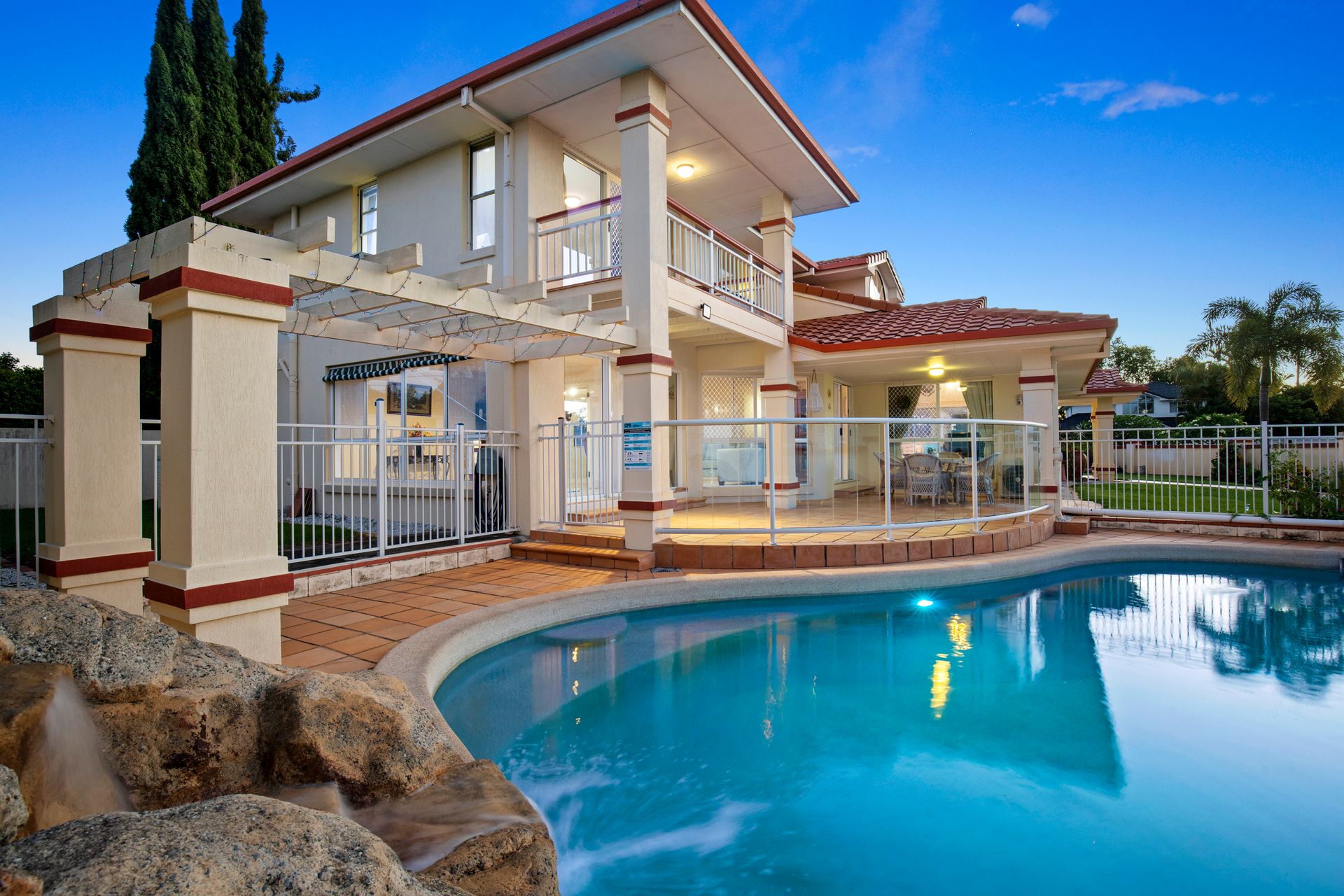 A long menu of home features include: * Huge 38Sq of quality built, solid brick and tile construction * 3 separate living areas for all the family to enjoy * Fantastic North Facing alfresco entertaining space by the pool * Four good sized bedrooms with fifth bedroom or office downstairs * Master bedroom with ensuite, WIR, balcony and skyline views * Large versatile living areas opening up to the garden and pool * Gourmet kitchen with Caesar Stone benchtops * Manicured gardens with large grassy yard for the kids * Crystal clear swimming pool with water feature * Double lock up automatic garage with internal access * Additional off street parking or room for a boat, trailer, caravan * Fully fenced 834m2 corner allotment