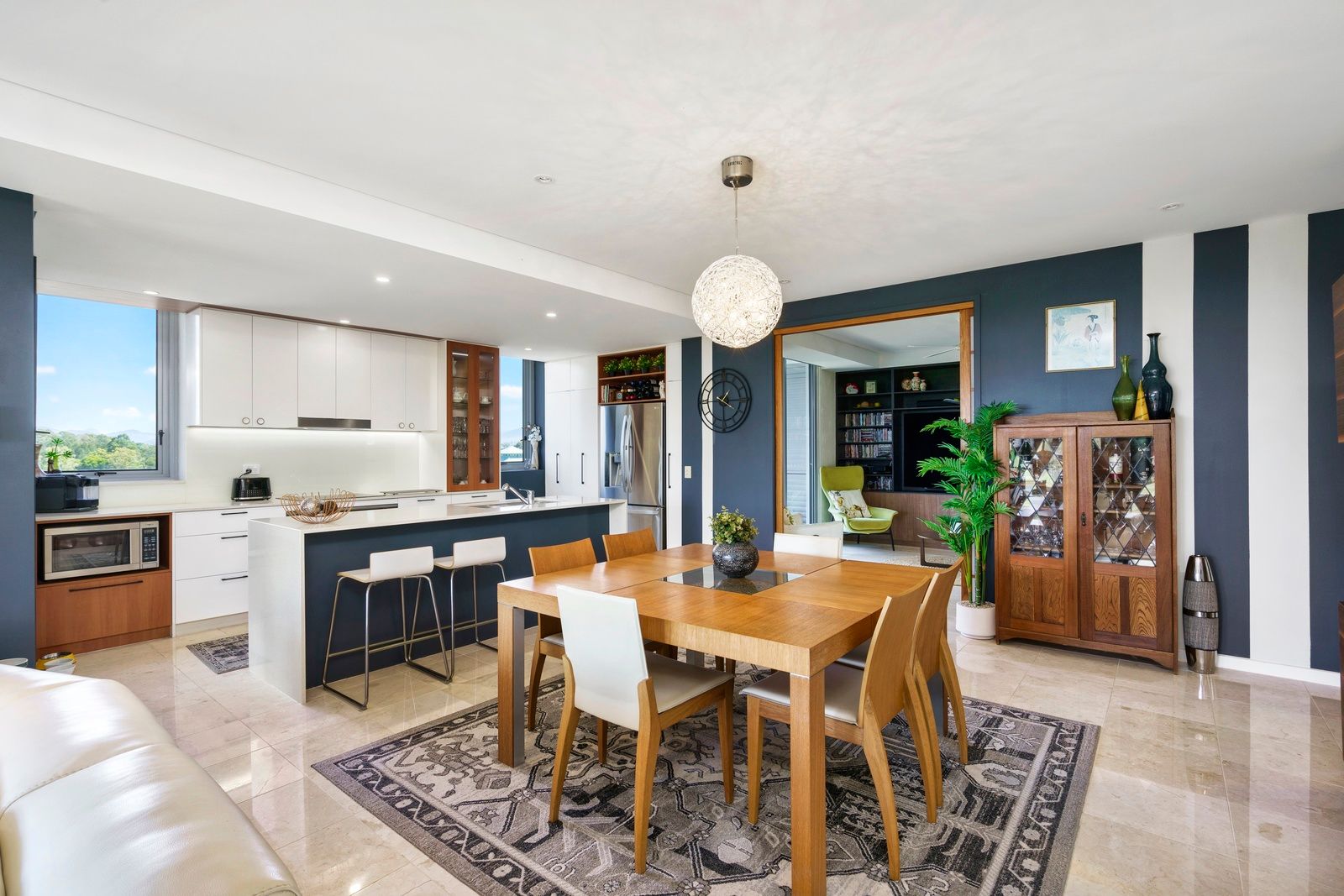The Apartment consists of 3 large bedrooms, altered off the plan by the Developer, the main and second bedrooms with ensuites, the 3rd bedroom is serviced by the reconfigured bathroom /laundry. There is also a media lounge to kick back and watch your favourite footy team. The combined dining area, ultra modern kitchen and living space is a huge open plan with the fabulous views already mentioned.