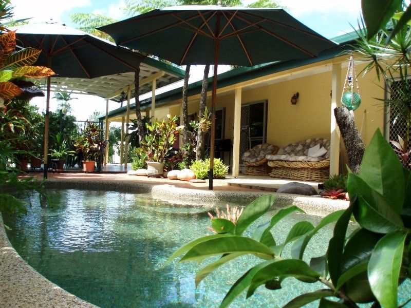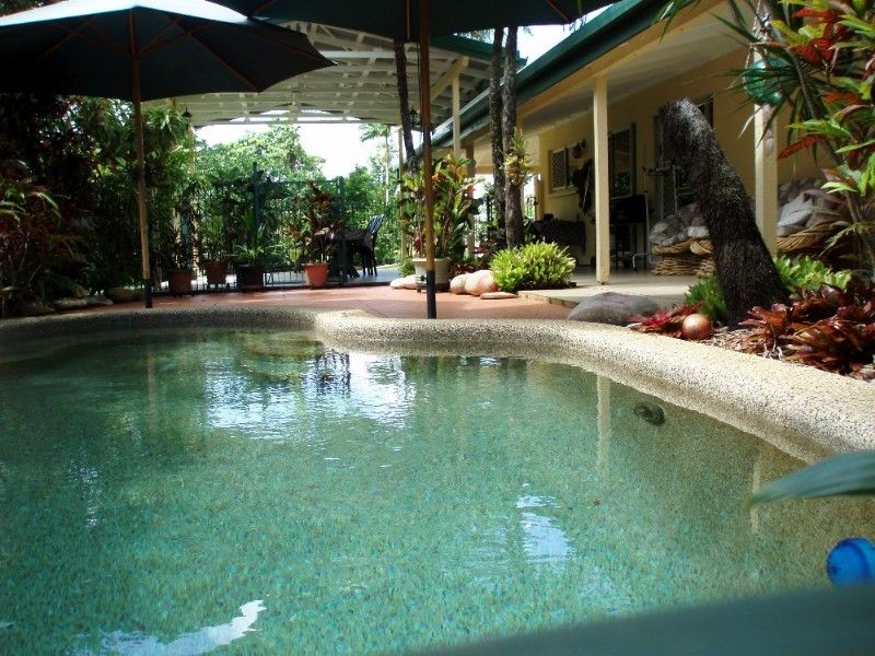 · Open plan self contained guest accommodation plus 2 bedrooms & 2 bathrooms · Resort style tropical pool setting · Private 1573m2 allotment in quite 'no through street · Relaxed outdoor living with poolside pavilion · Nestled below the rainforested foothills of Clump Pt National Park · Walk to Bingil Bay Beach in a few minutes · Lush tropical garden setting