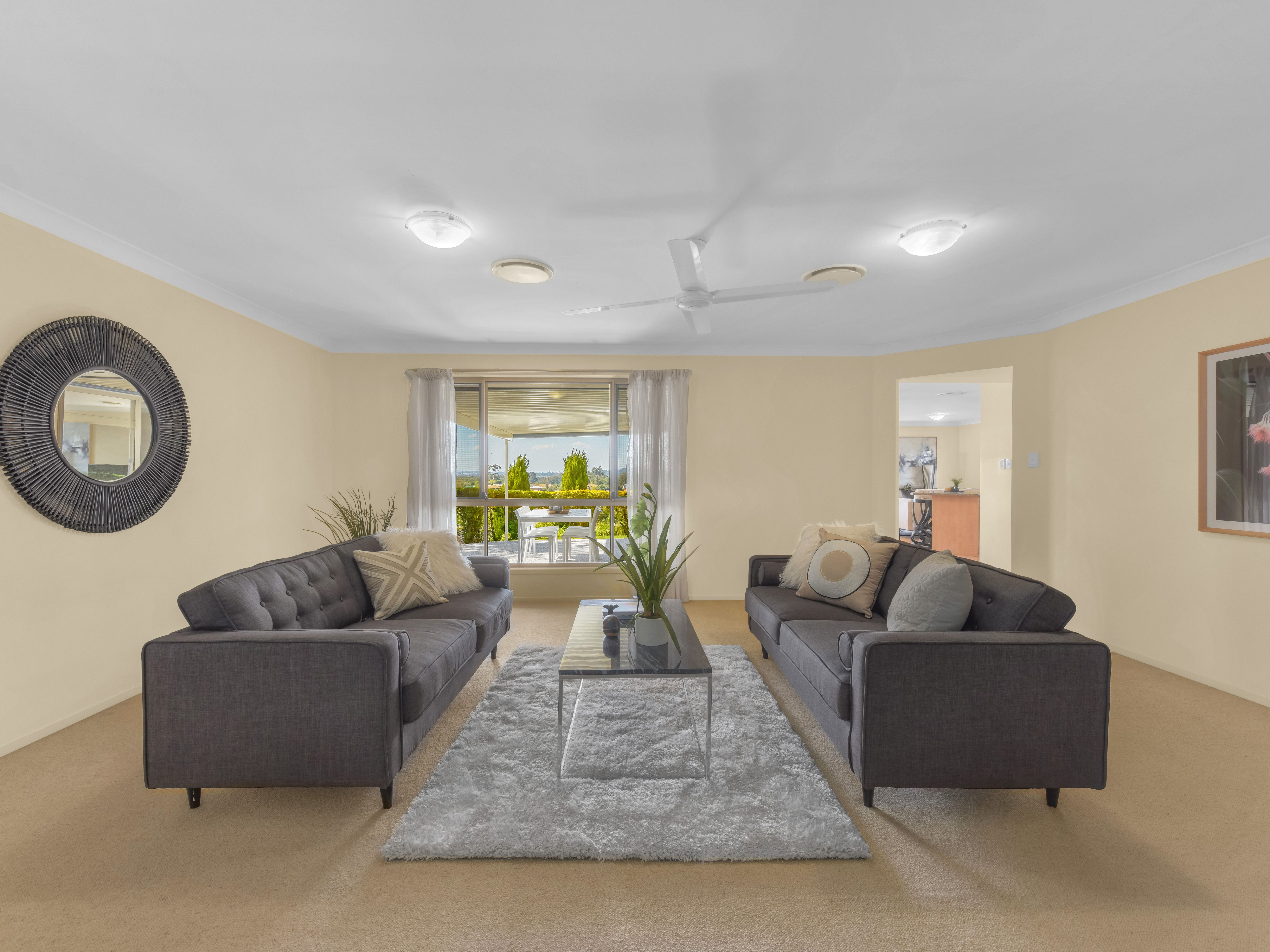 Fantastically positioned on an 854m2 block there is a beautiful eastern view from the back patio over the rolling hills as far as the eye can see. The home flows from the oversized living area in the centre of the house, effortlessly to the huge kitchen and dining area. This open plan kitchen /dining/living area really is the heart of the home. The eastern wall takes full advantage of the spectacular views with floor to ceiling windows and large sliding glass doors out to the patio and back yard. The oversized master bedroom is complete with ensuite, walk in robe and looks directly out towards the gorgeous views. The other 3 bedrooms are all large, and fitted with built in wardrobes and the remaining room can be used as a 5th bedroom or large home office. Fantastic location, just a 2 minute drive from Bellbowrie Shopping Plaza, walking distance from public transport, Moggill State School and the Brisbane CBD is only 25 minutes away.
