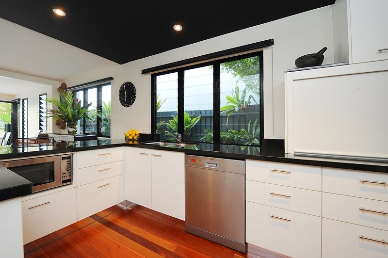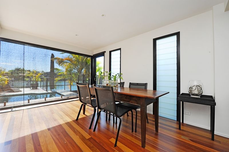 The sleek & modern kitchen provides a central point within the home allowing for interaction with guests whilst providing a pleasant outlook over the pool and waterfront. Sure to make many avid chef's envious, the kitchen boasts top of the range stainless steel appliances, gas cooktop and hand crafted stone. With polished hardwood floors throughout, the free flowing living spaces downstairs take full advantage of the vista, while the full length stacker doors open the entire floor to the pool. The use of louver windows provides an abundance of natural light and breezes throughout the home.