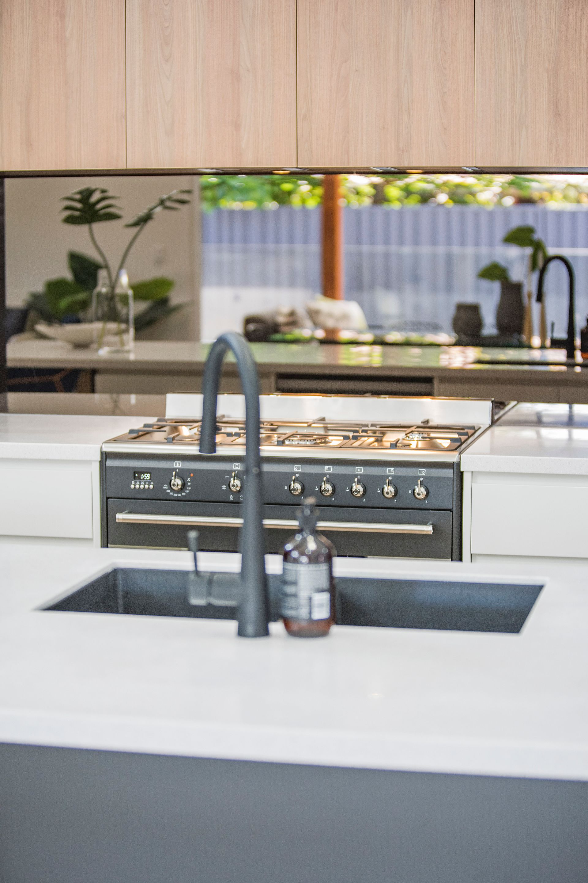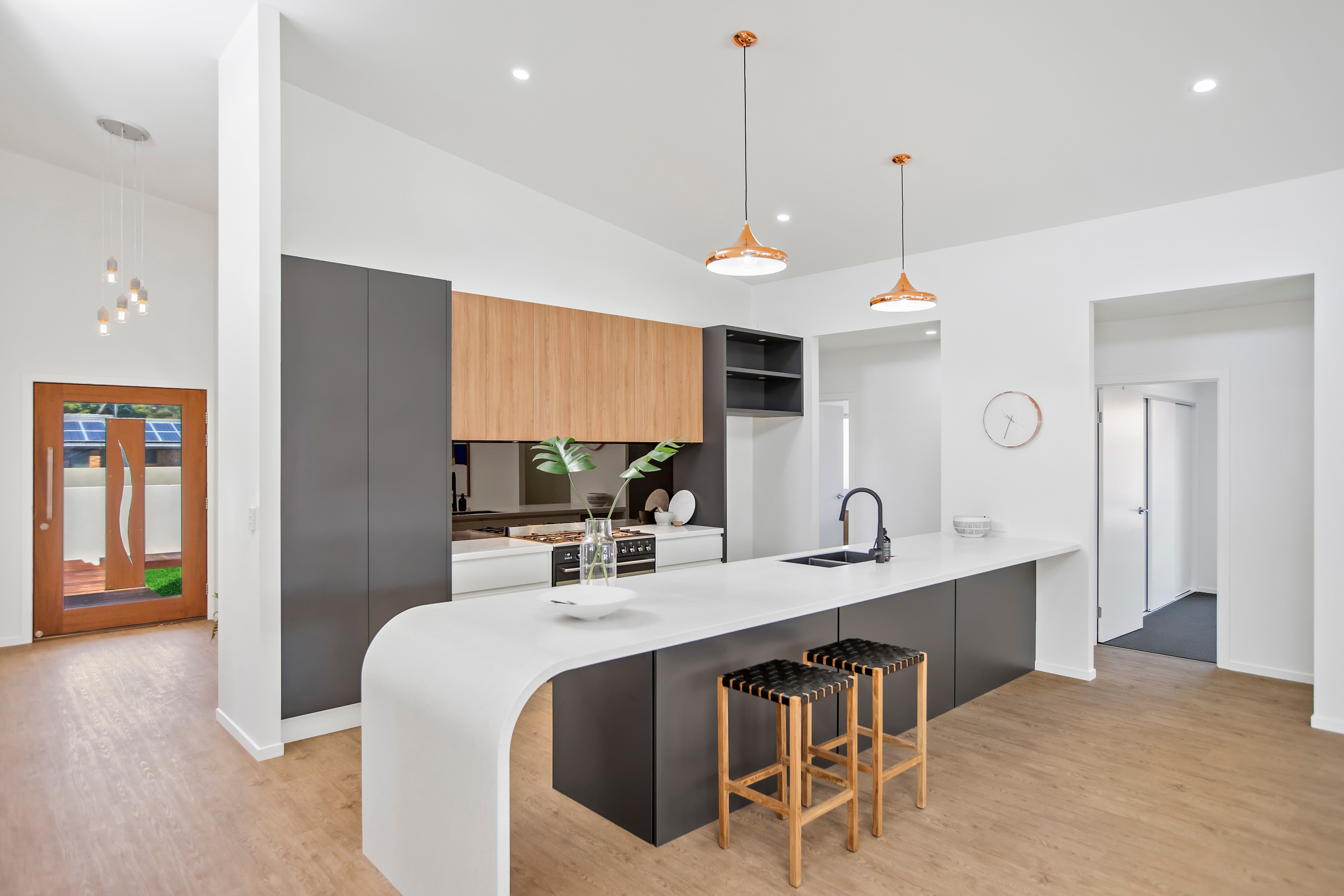 The kitchen has been well considered for the keen entertainer with a smeg 900m freestanding gas stove, loads of storage and space across the uniquely designed feature corian benchtop.