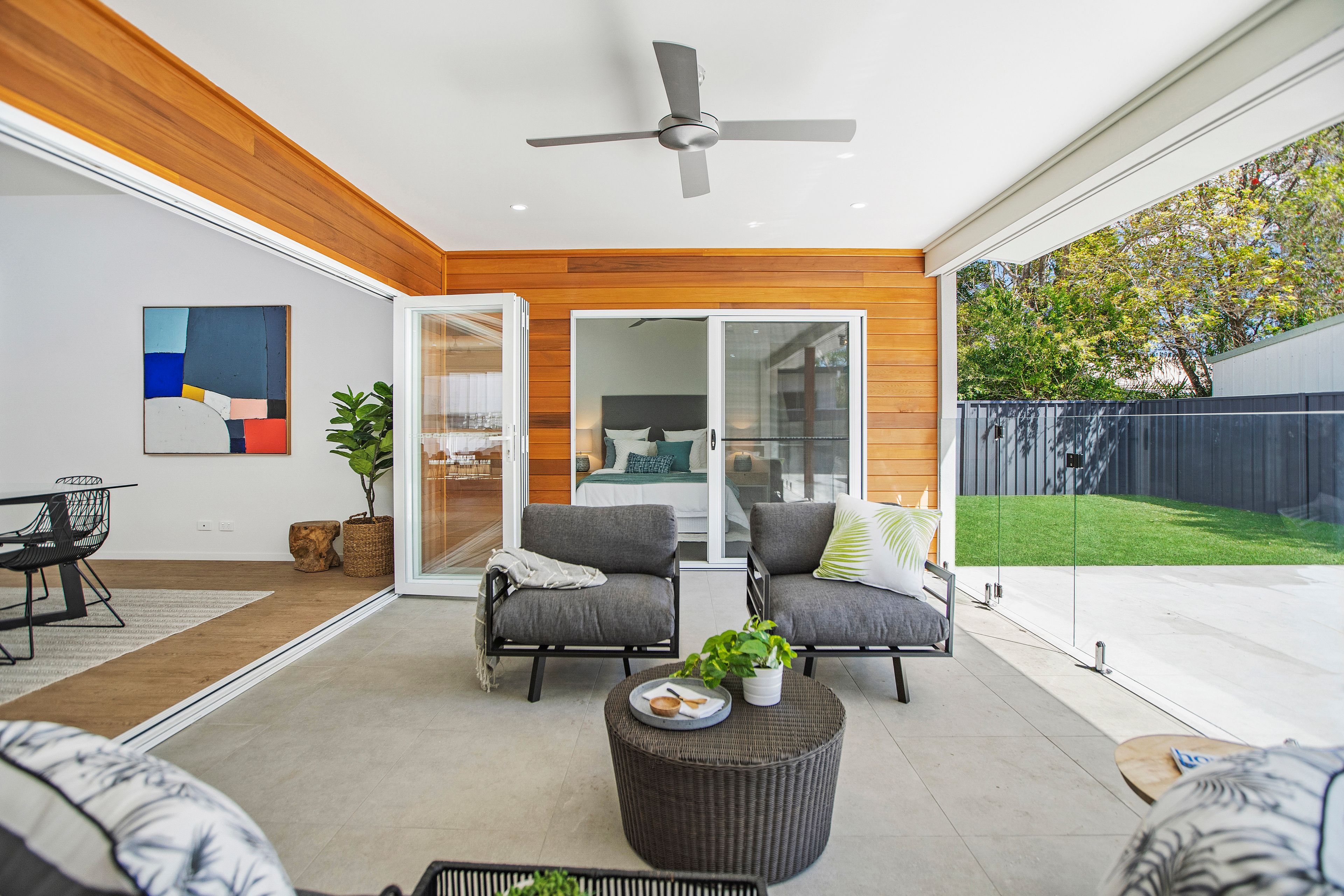 From the kitchen the living and dining zone are open plan and flow effortlessly onto the outdoor entertaining space, lots of windows and the large bifold doors ensure loads of natural light and creates an open, spacious and inviting feel in both the living/dining and entertainment area.