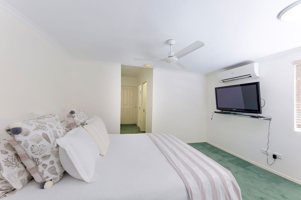 There is plenty of room for when the family visits thanks to three good-size bedrooms including the master bedroom which has an ensuite, walk-in wardrobe and private access to the apartment's wrap-around balcony. All three bedrooms have air conditioning and ceiling fans, and there is a split system air conditioning unit in the living room.