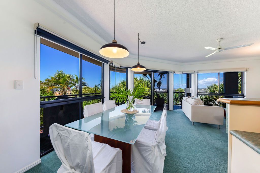 Set within the Portofino complex which has just five apartments, number three is located on level one and has intercom security and lift access. Thanks to its elevated position, the wrap-around balcony offers sweeping views from the Glass House Mountains, across to Caloundra and out to Mooloolaba.