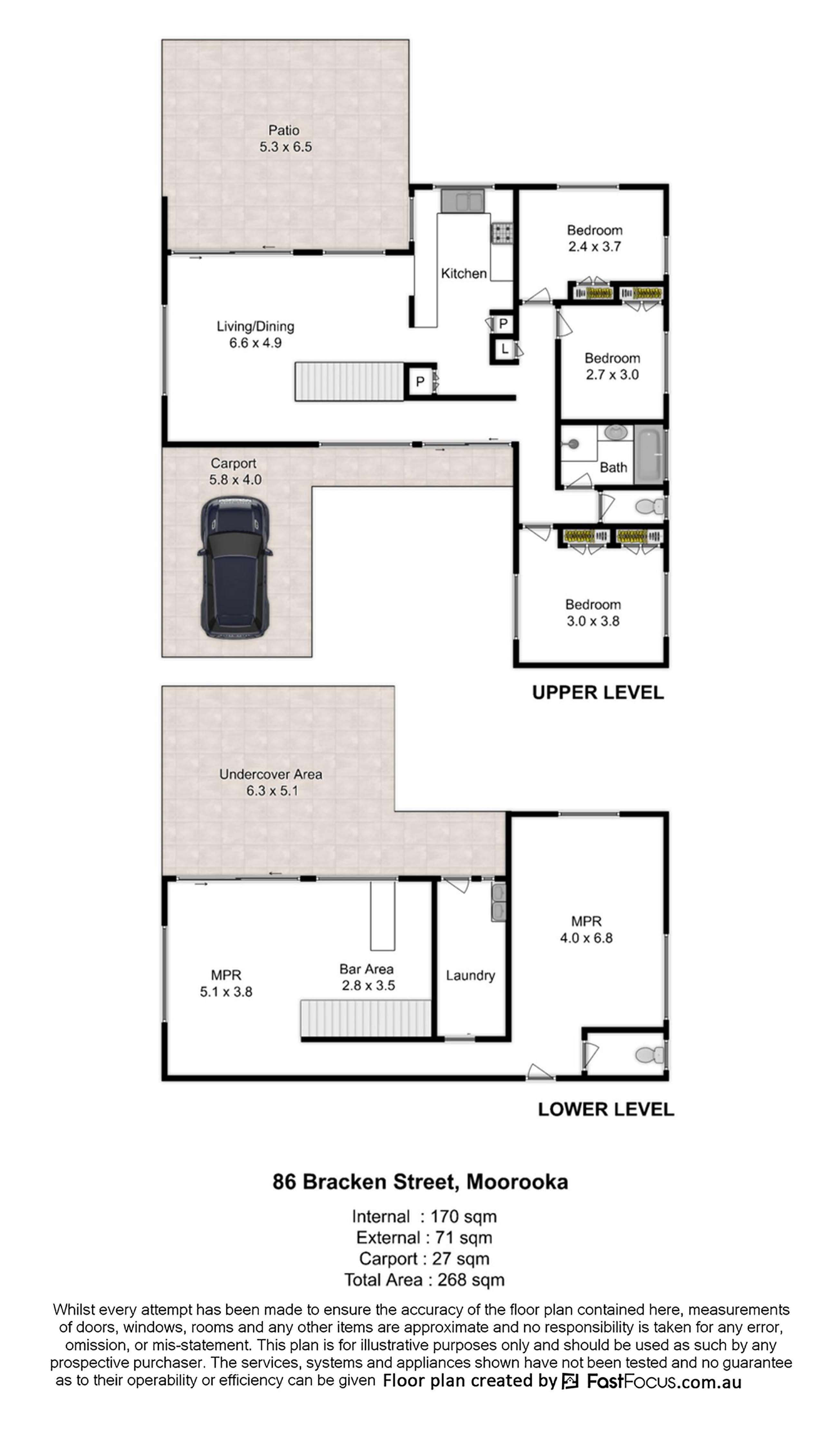 Property features: • 607sqm block with 18-metre frontage • North facing unimpeded city views • Open plan kitchen, lounge and dining area • Three bedrooms with built-in robes • Central bathroom with a separate toilet • Second toilet and internal laundry downstairs • Two large multipurpose rooms with a bar • Alfresco patio, undercover area and backyard • Single carport