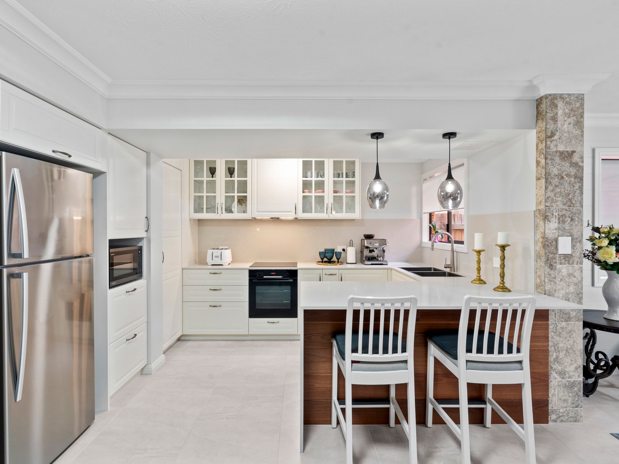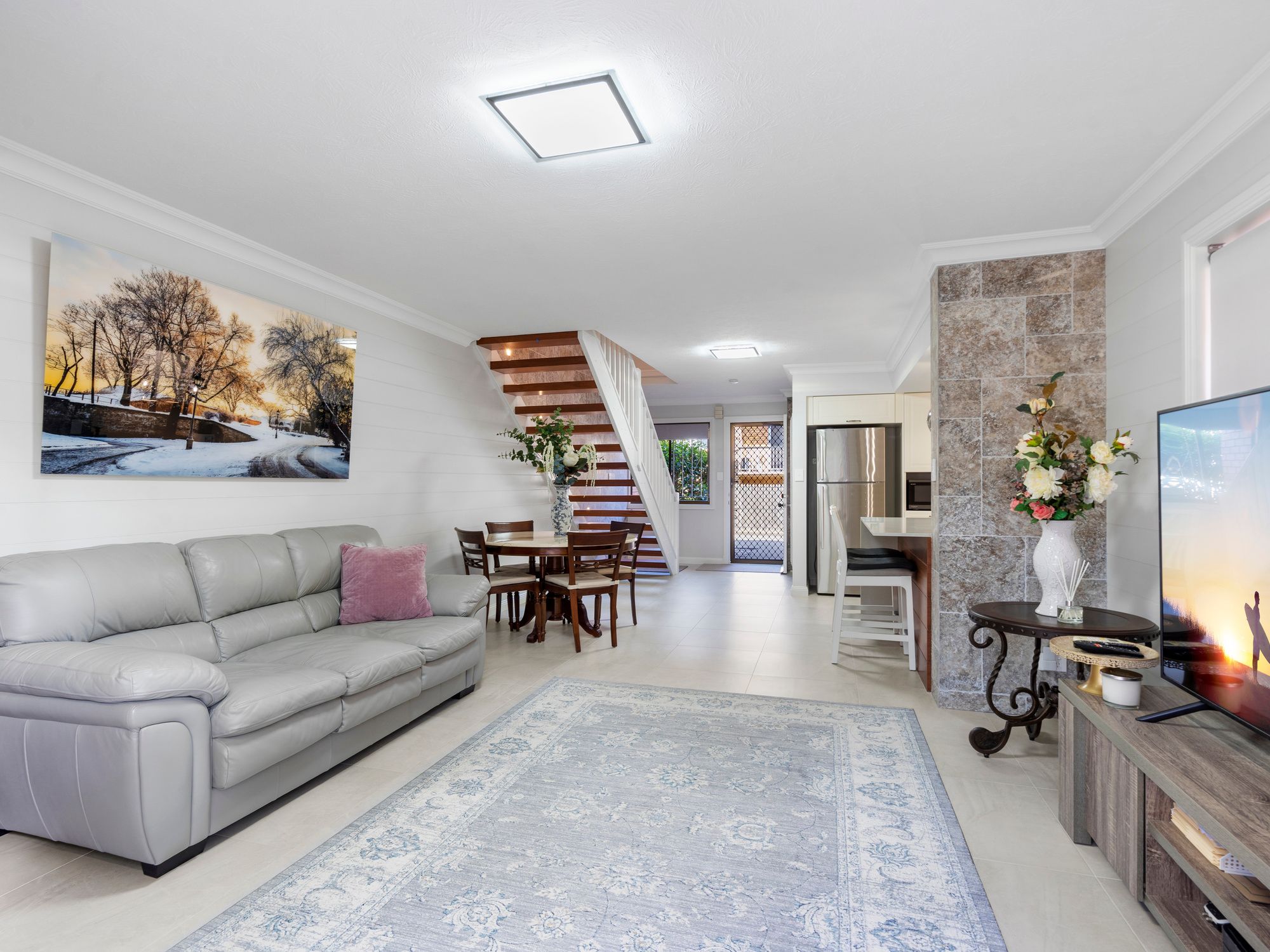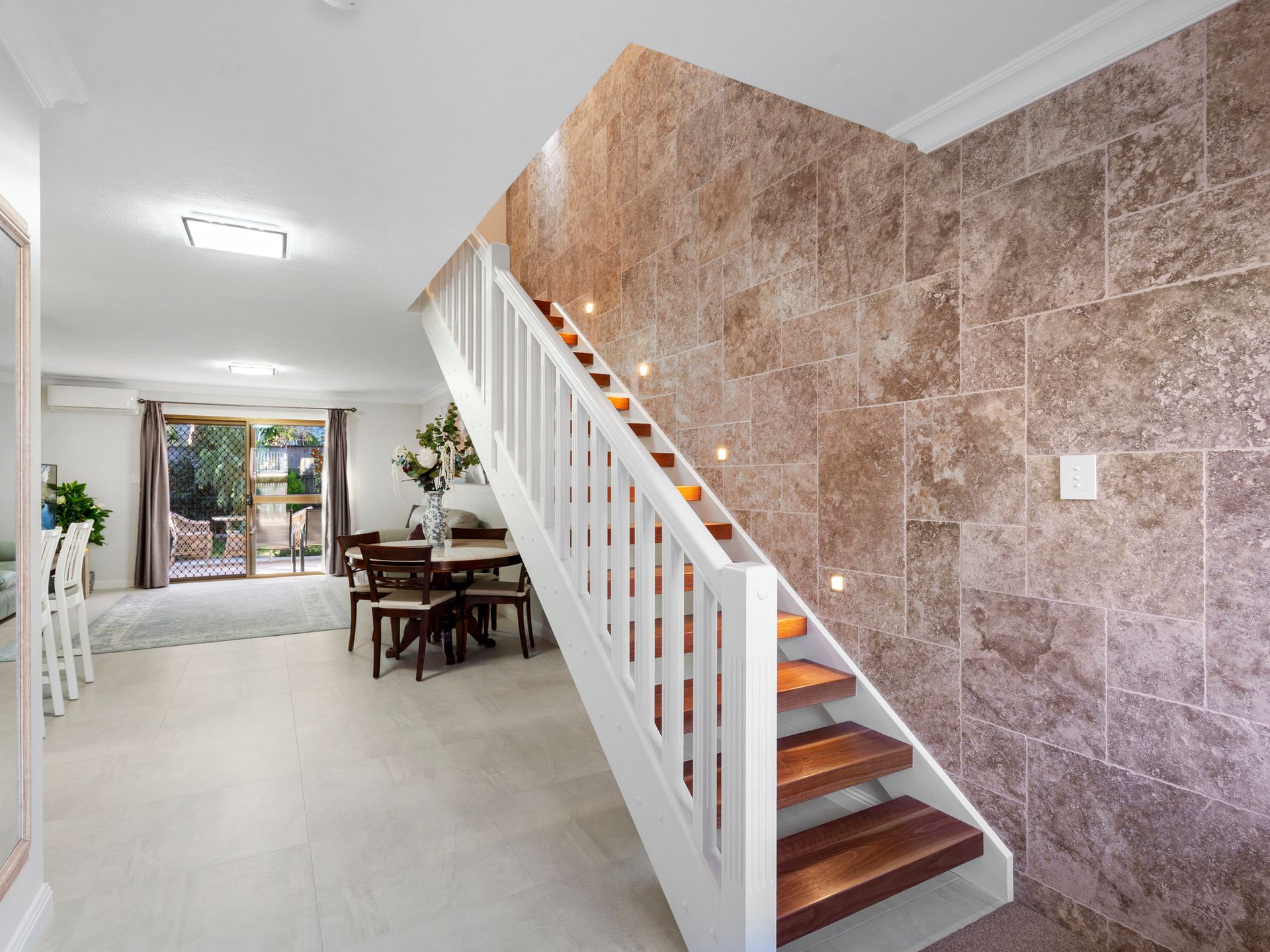 Features include; • Two feature stone columns downstairs • All original skirting boards, cornices, architraves and upstairs doors replaced • Kalvinator air conditioner downstairs and main bedroom • Brand new Mitsubishi air conditioner second bedroom • Built in second bedroom • Kitchen has large pantry with 4m2 of shelved space available and light sensor • Bosch dishwasher • Oliveri mixer • Soft close draws with abundance of cupboards • New laundry in lock up garage and cupboard space • External self contained side herb garden • Screens blinds and curtains throughout • 3 large potted trees for patio privacy