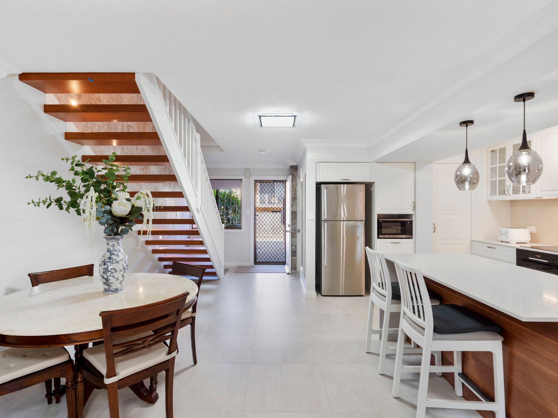 Fastidiously renovated, this classy two level townhouse awaits your inspection. The current owners have gone well above and beyond in their labour of love restoration and renovation project and you the buyer will only need to move in. Downstairs the entertainers delight kitchen is perfectly equipped and well placed to entertain guests both inside and outside the property. Or for simple relaxation, utilise the caesarstone island benchtop for a meal and glass or two of wine. The brand new kitchen has been beautifully put together and features Bosch appliances, Franke sink, a lazy Susan and Carousel under the sink. The light infused living/dining area is spacious and offers easy access to the private rear courtyard.
