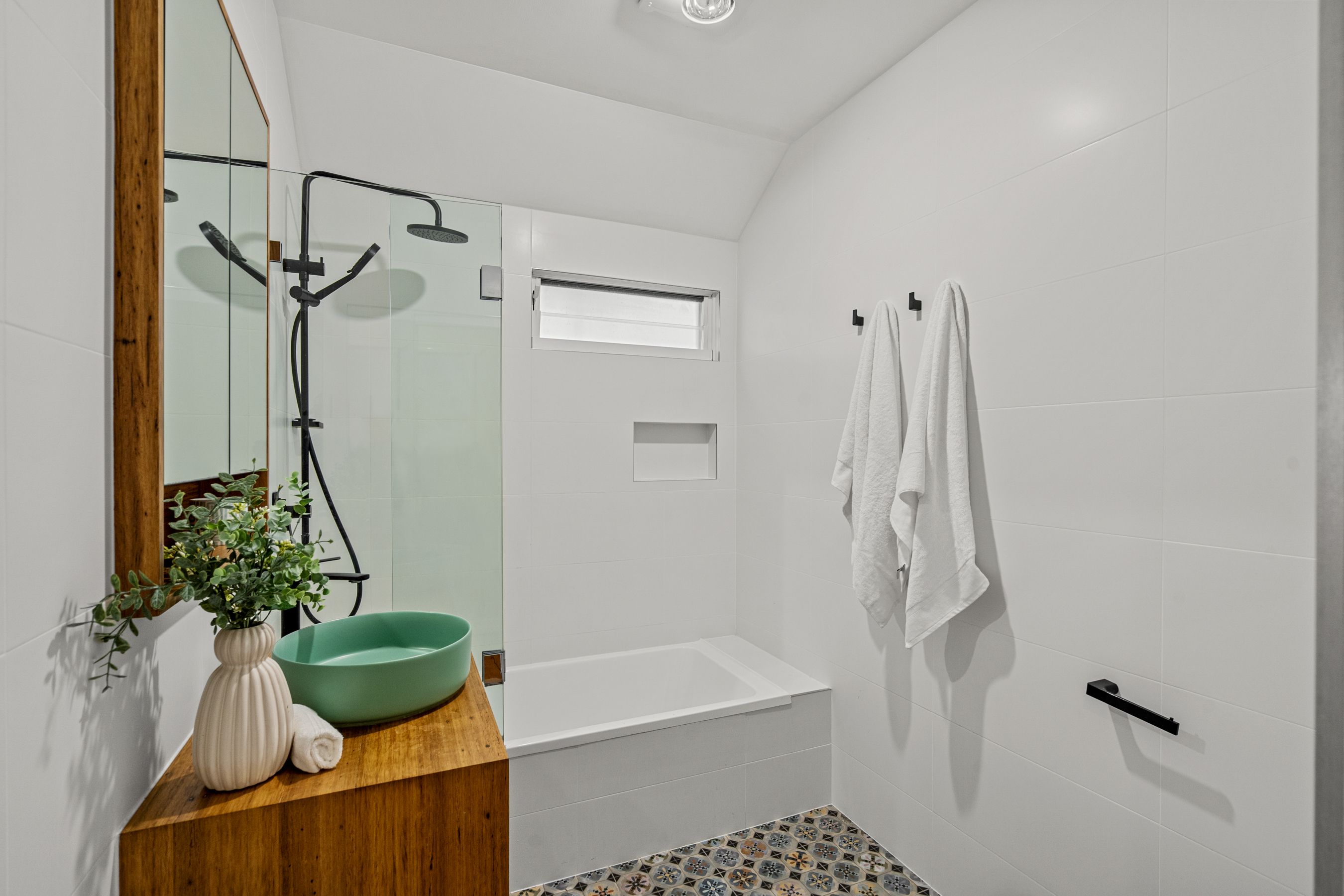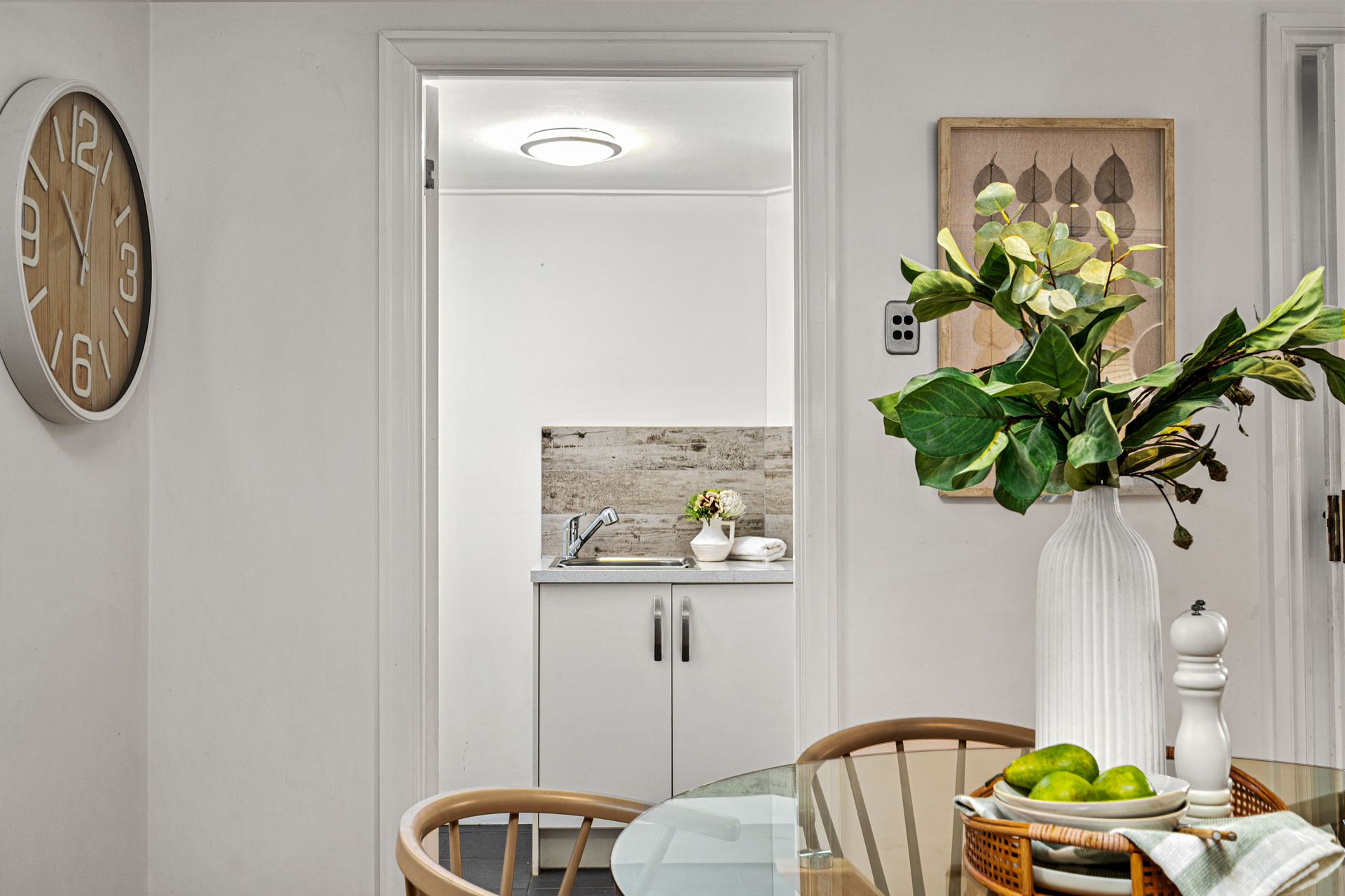 Upon entry, you're greeted by two inviting bedrooms and a versatile study space, ideal for work or relaxation. The heart of the home boasts a meticulously designed kitchen, complete with a sprawling island bench, providing ample space for culinary creativity to thrive. Step into the modernized bathroom adorned with intricate patterned tiles and a timber feature vanity, creating a serene sanctuary for rejuvenation.