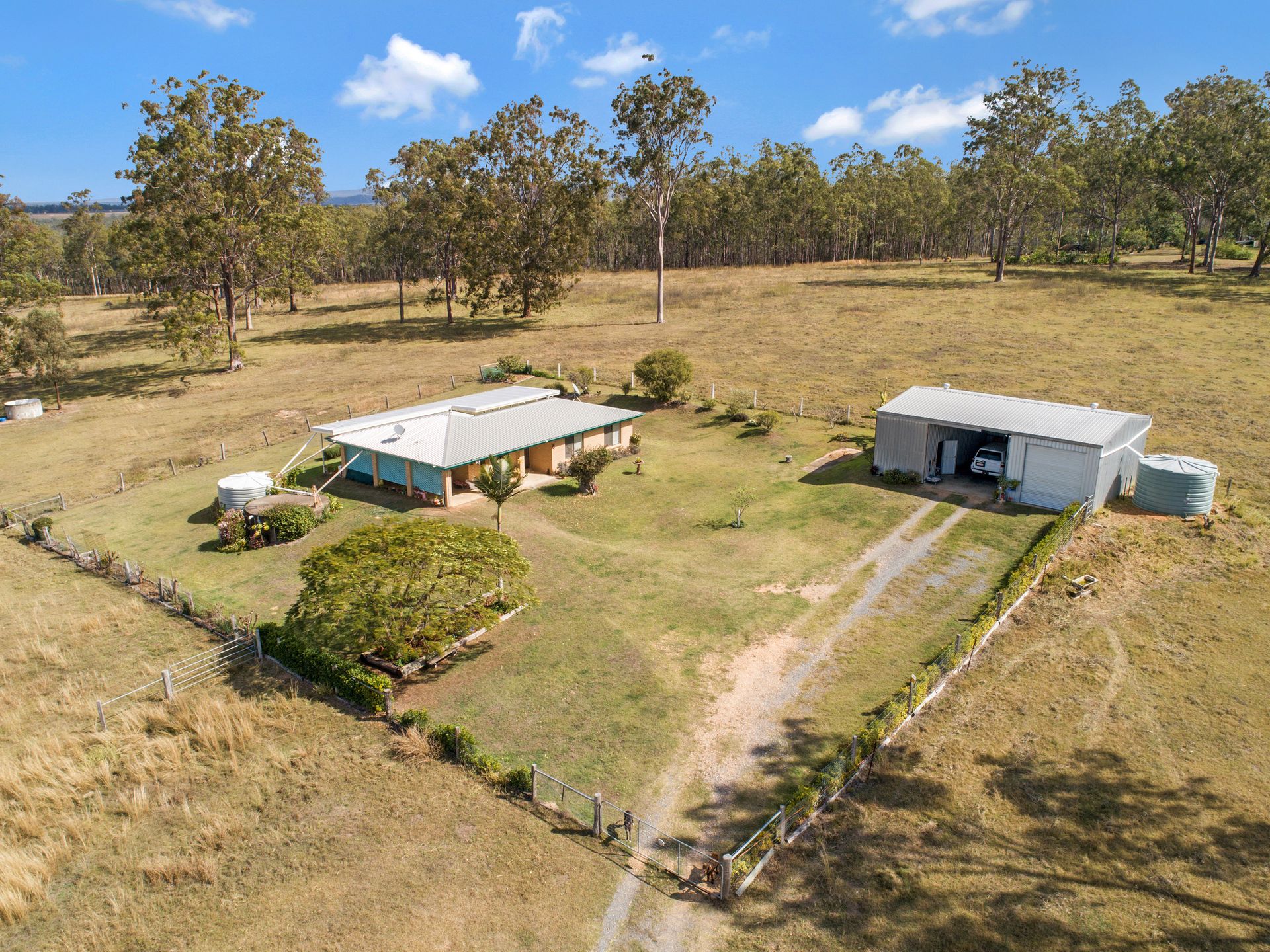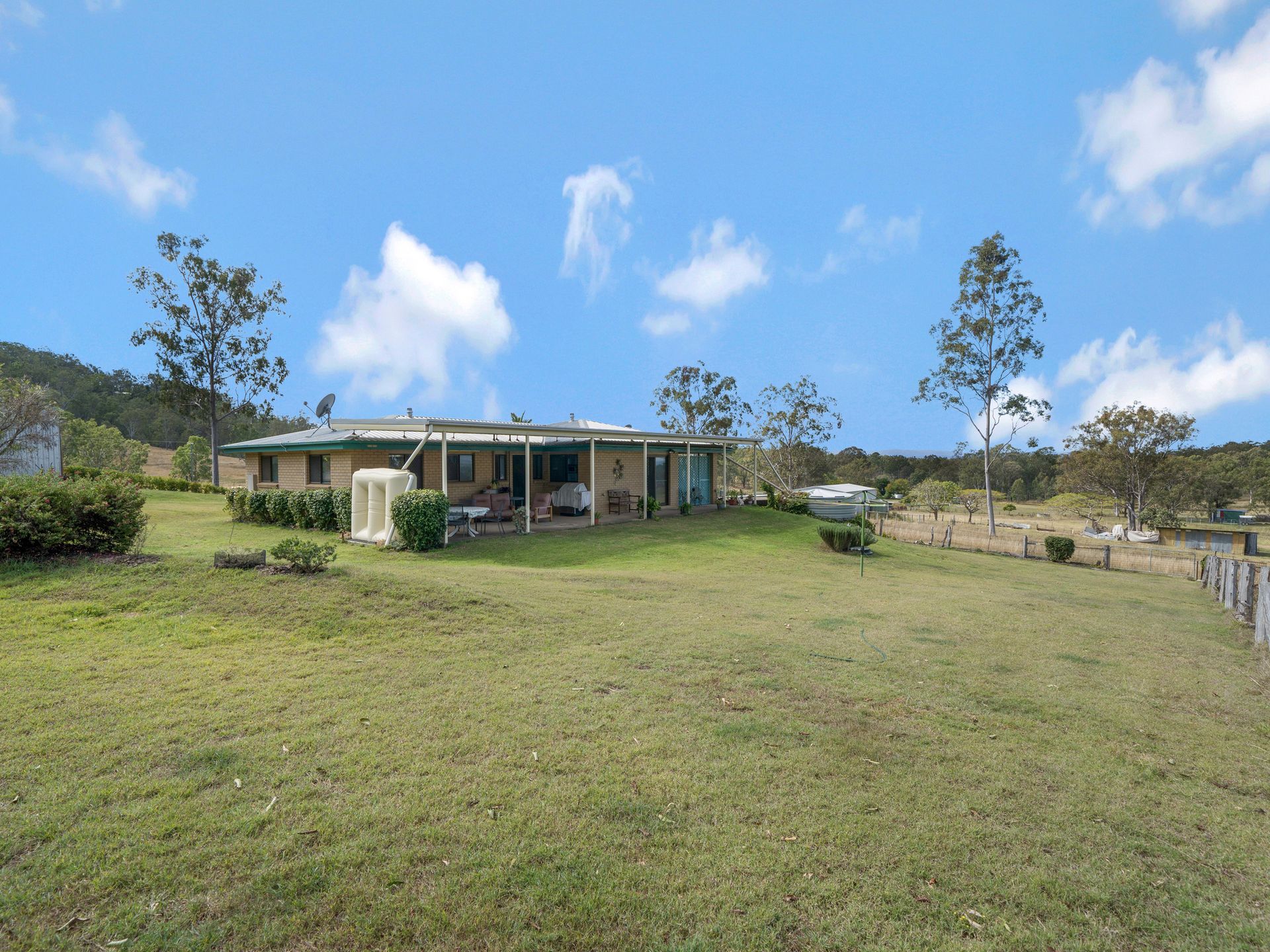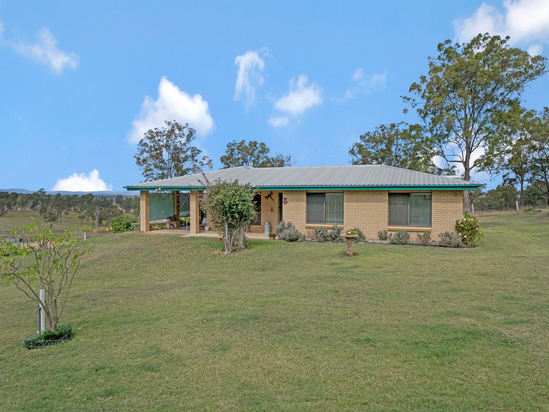 - Gently sloping pastures divided into 9 paddocks and holding yards - Well appointed 3 bedroom home with built ins to 2 bedrooms - Separate lounge and dining - Separate bath and shower - Air conditioning - Security screens and doors throughout - On the highest point with commanding views over land and beyond - Picturesque undercover rear entertaining area - Single adjoining carport attached house - Abundant water with x2 bores and x3 dams plus 3x5000 gal rain water tanks, x2 10m x 14m machinery sheds allowing ample undercover storage and lockup - Solid set of timber yards with loading ramp and vet crush Observe the abundant wildlife, birds, koalas from your own rural oasis only 60 minutes from Brisbane and 35 minutes from Toowoomba.