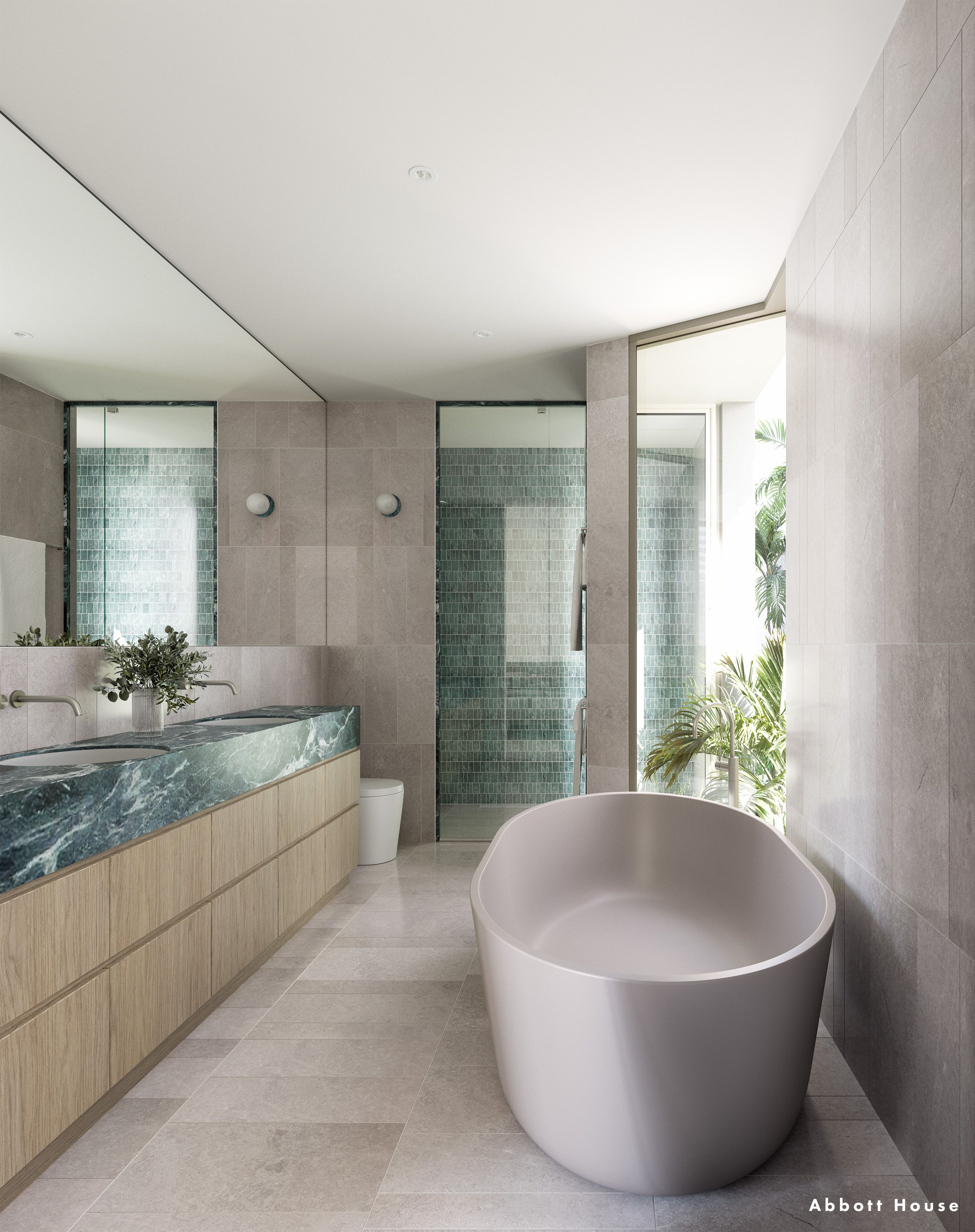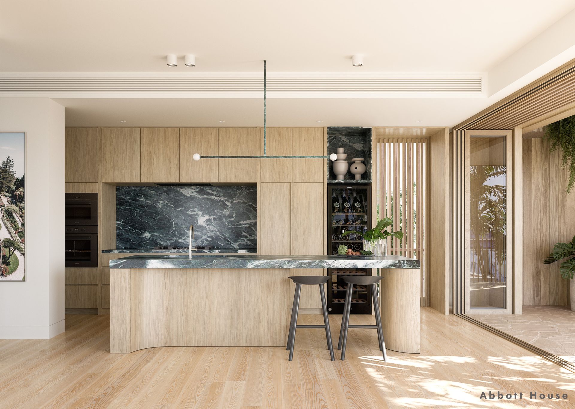 Oak, Blackbutt timber and expanses of stone, including Verde Alpi marble, Quartzite, Caesarstone and Travertine, complement the surrounding landscape while maintaining luxury and elegance at every turn.