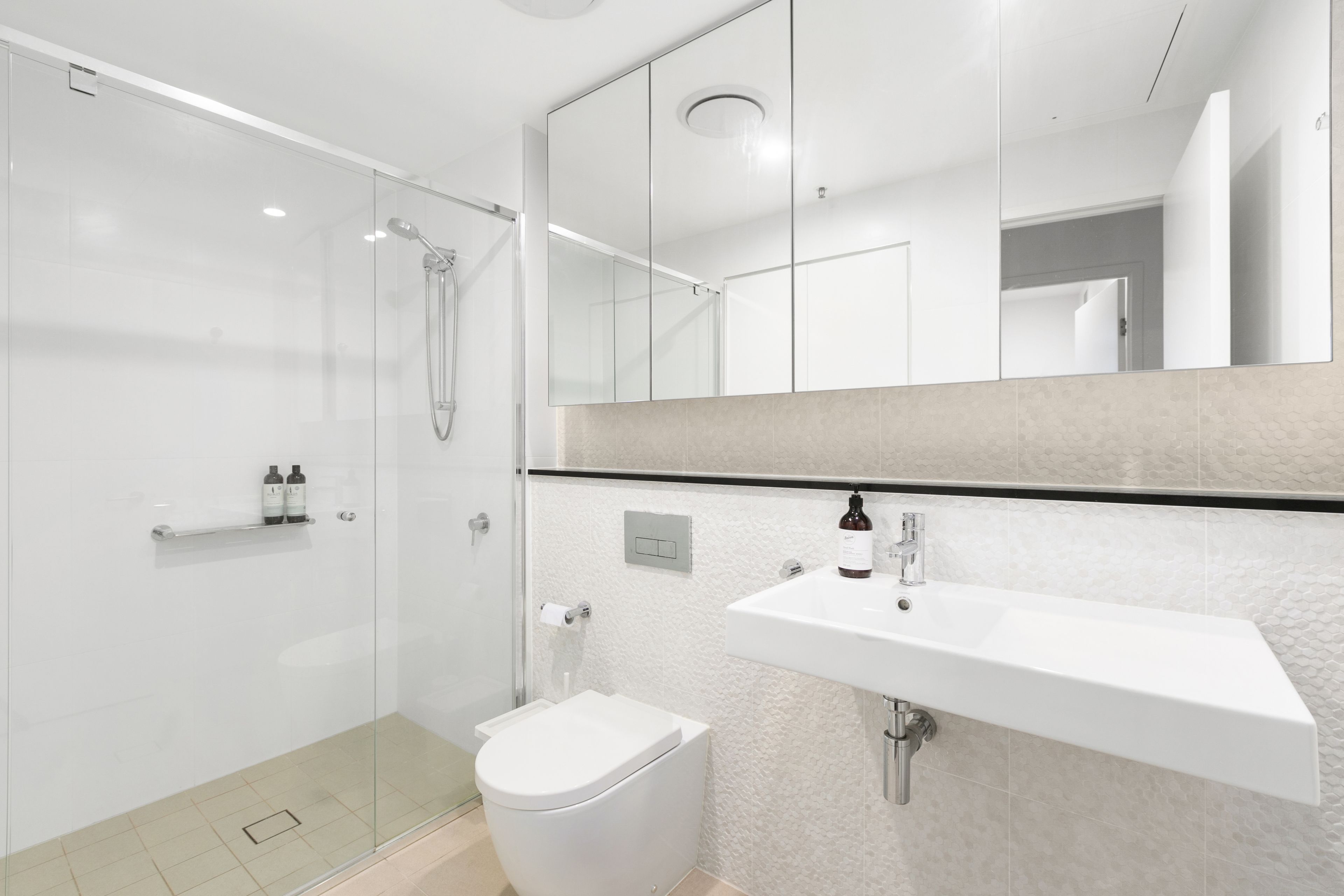 The open-plan design incorporates floor-to-ceiling glass and is in perfect condition and ready to be sold. The two spacious bedrooms feature built-in mirrored wardrobes, with the master bedroom boasting a full-size bathroom. Both bathrooms are exceptionally modern and impressive, with feature tiling, contemporary vanities for owner-occupiers to enjoy.