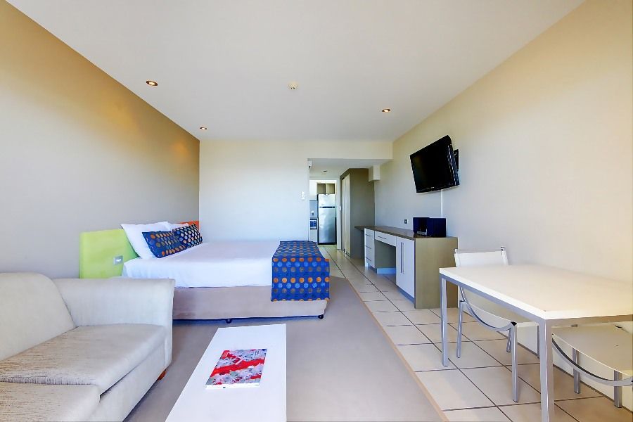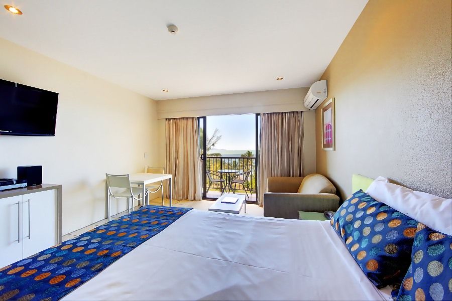 Self contained, refurbished executive studio unit Fourth floor corner unit with extra kitchen space Fully air-conditioned Includes full furniture package with queen bed Private balcony with spectacular waterfront views Outdoor pool & sundeck overlooking the ocean Onsite management with reception & information desk Wireless internet, onsite laundry, two elevators Close to everything! The ideal location for holiday makers