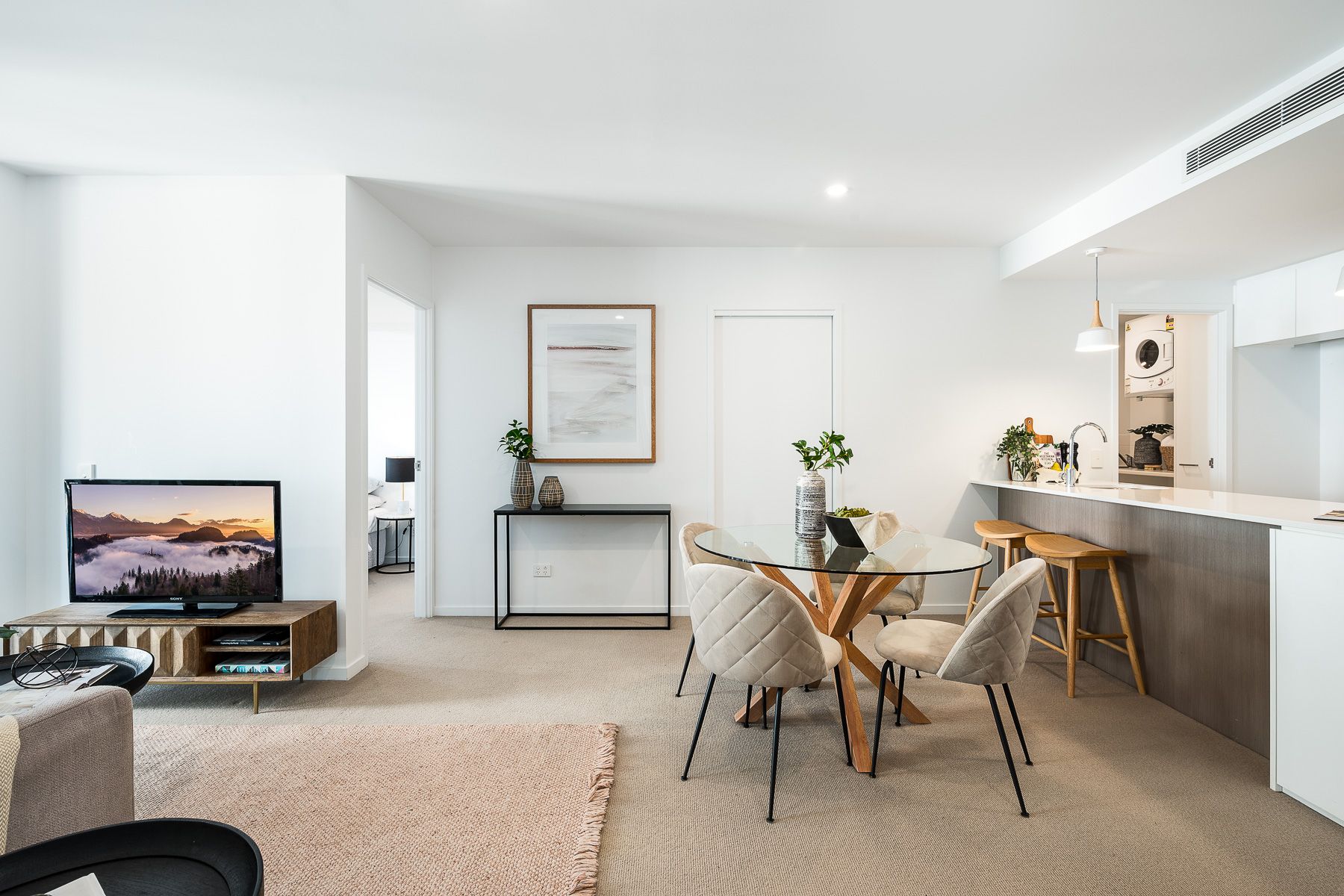 The open-plan living and dining area is the heart of this home, offering a seamless flow and an abundance of natural light. The modern kitchen is equipped with high-quality appliances, ample storage space, and a breakfast bar, making it a perfect space for cooking and entertaining. Also featuring a spacious balcony area and separate laundry built in, this apartment really does tick all the boxes.