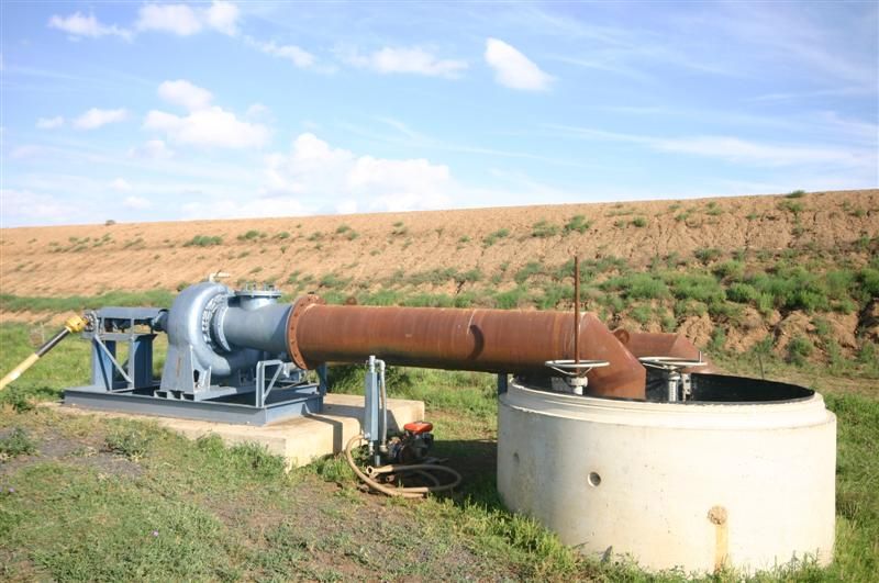 . 2800 gal/hr bore with diesel motor and Murphy switch, pumps to two 5000 gal tanks gravity feeding majority of property.