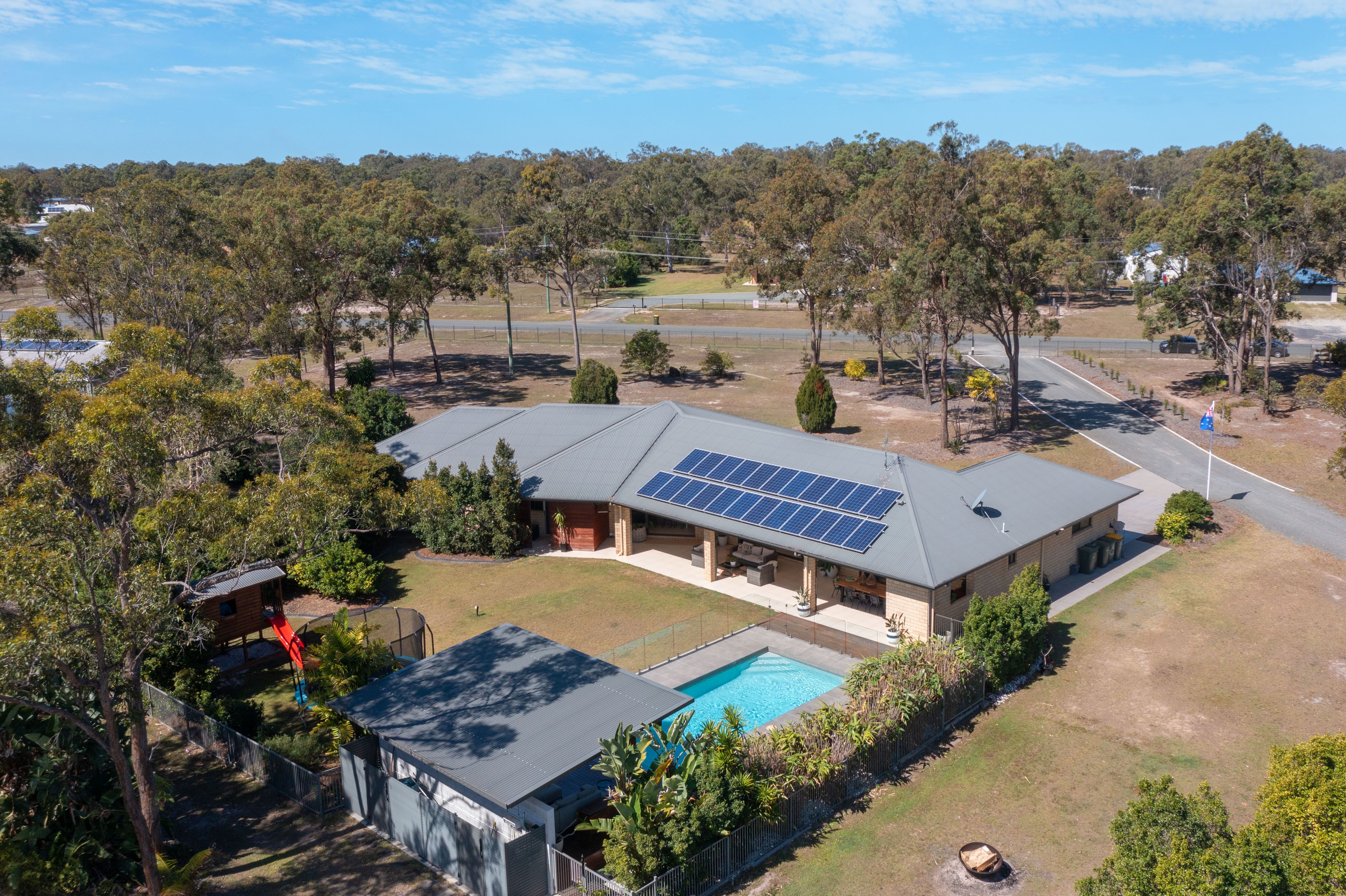 - Shed 12mx 12m - drive through, 3 bay with 3 phase power - Water tanks 3 x 5000 gal tanks on house & 1 x 7500 gal tank on shed - Solar Power - Ducted Aircon throughout - DLU Garage with built in storage - Gas Hot Water & cooktop - Inground resort style pool