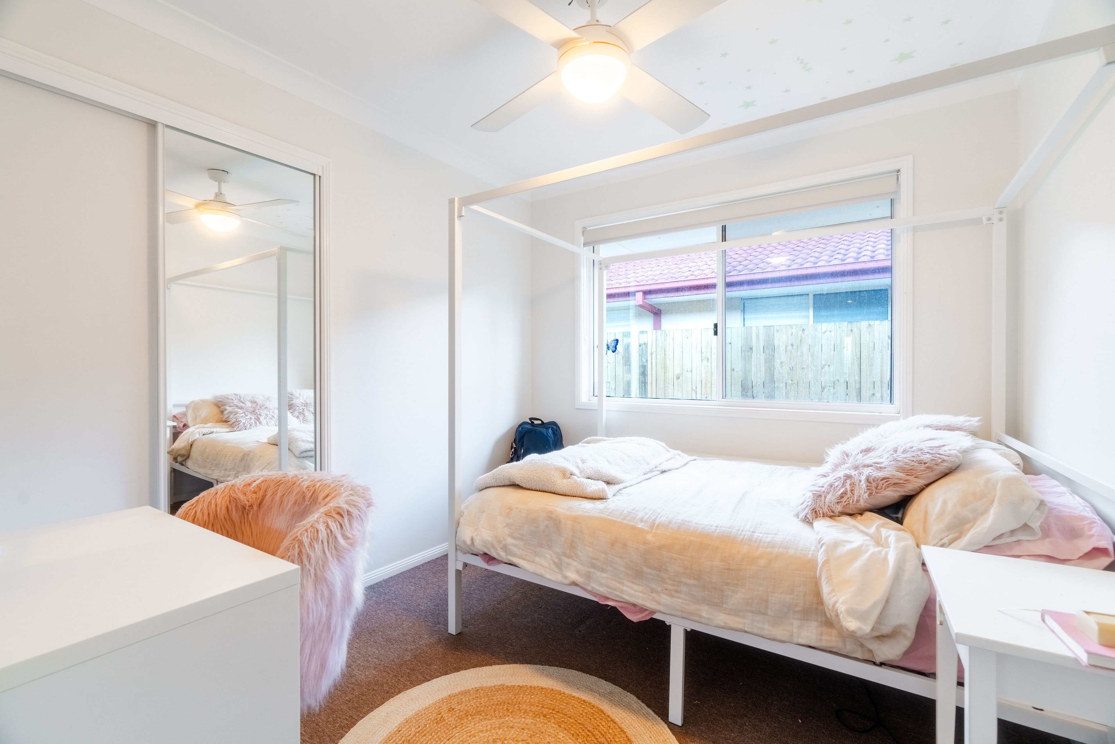As you enter, you are greeted by the open living and dining area with a full view of the large backyard. The bedrooms are all well-appointed with built-in wardrobes, and the master bedroom features an ensuite for added convenience. Split air conditioning in the living and master bedroom makes summer time a breeze. Outside, the large backyard is perfect for kids to play in, while the covered patio is ideal for outdoor dining.