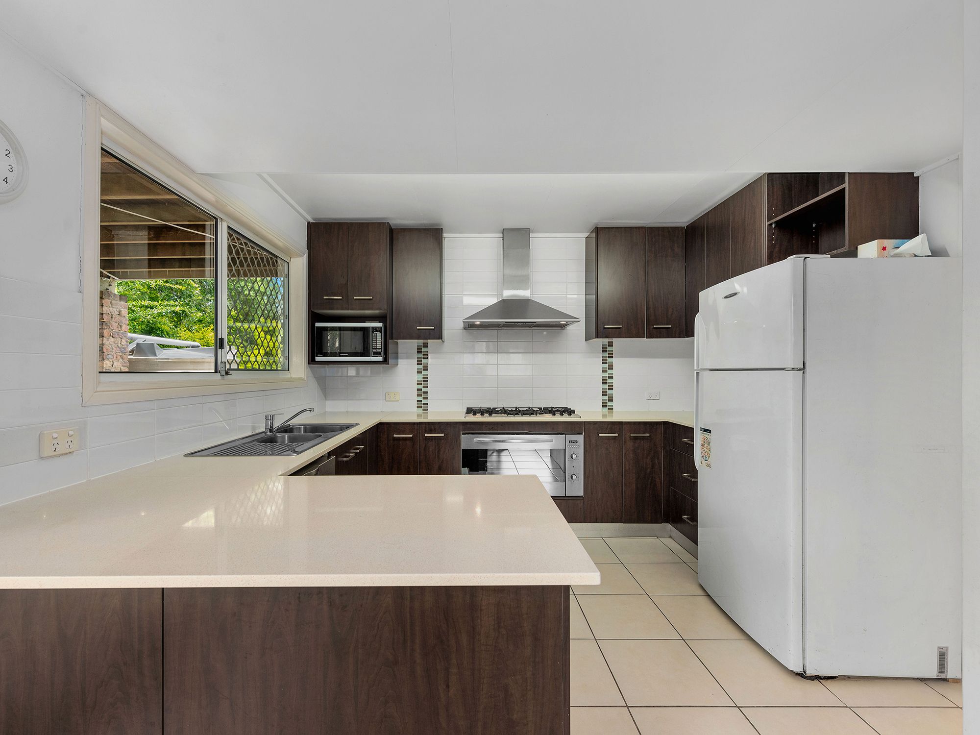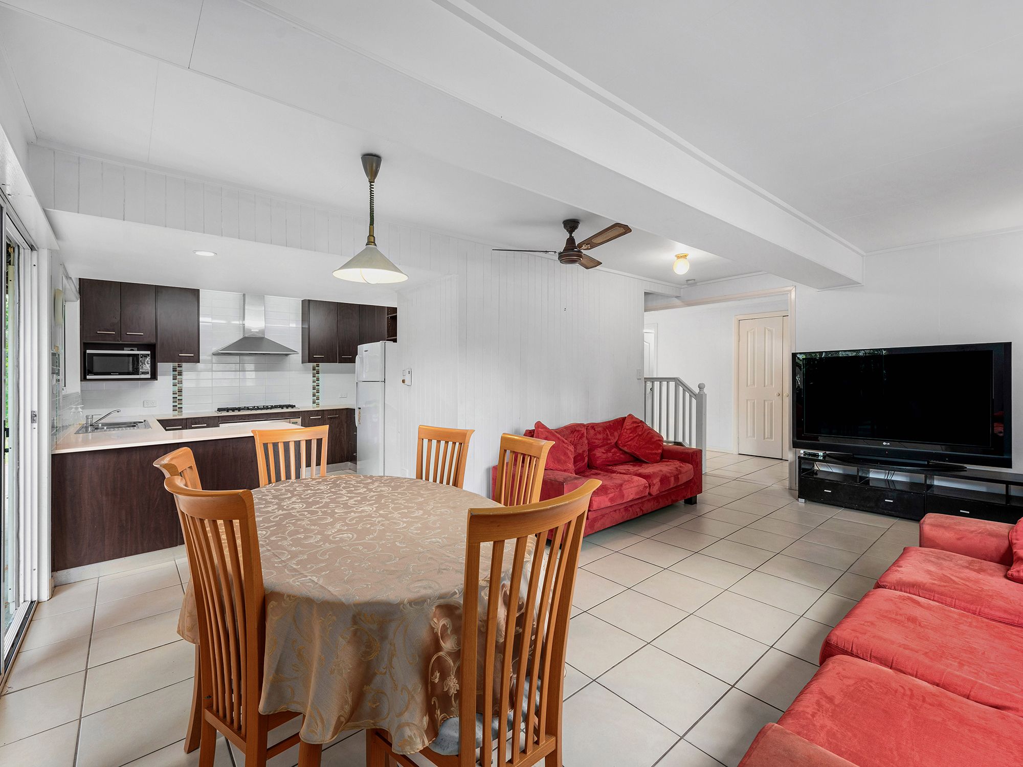 Showcasing a private and a whisper-quiet family lifestyle, this timeless home offers two spacious levels of living. The ground floor is the central hub with a modernised layout. It has a large living and dining area with tiles and air-conditioning. The adjoining kitchen has an Ariston wide oven (with a spit rotisserie), a six-burner gas cooktop and a vented exhaust.
