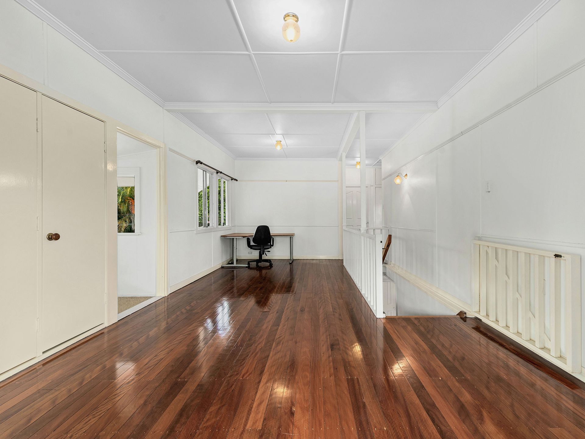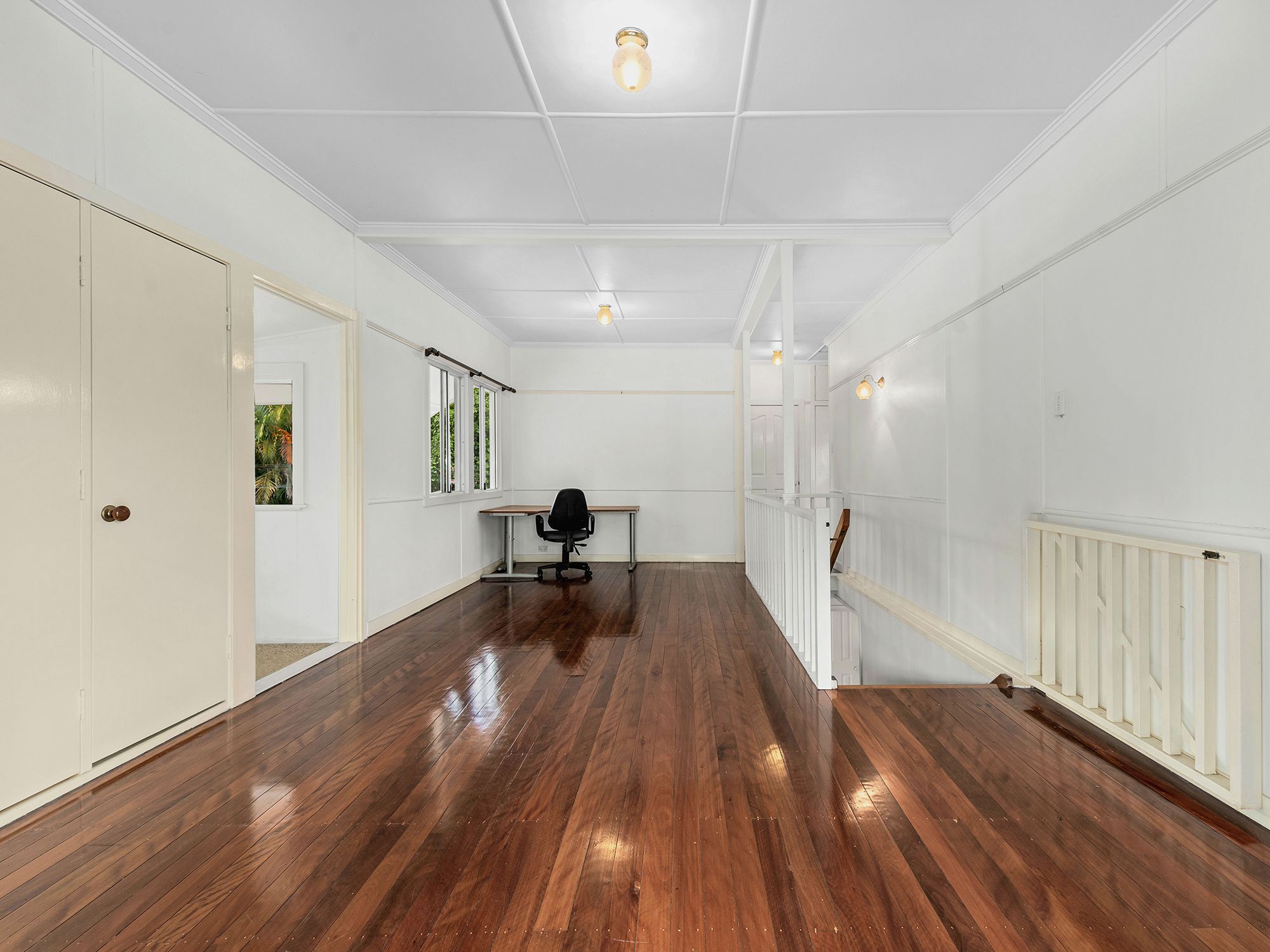 Upstairs has a glowing secondary living area with polished hardwood timber floors. It opens via French doors to the impressive balcony which can comfortably seat up to 18 people- it's a magical spot for a celebration or just a Sunday lunch!