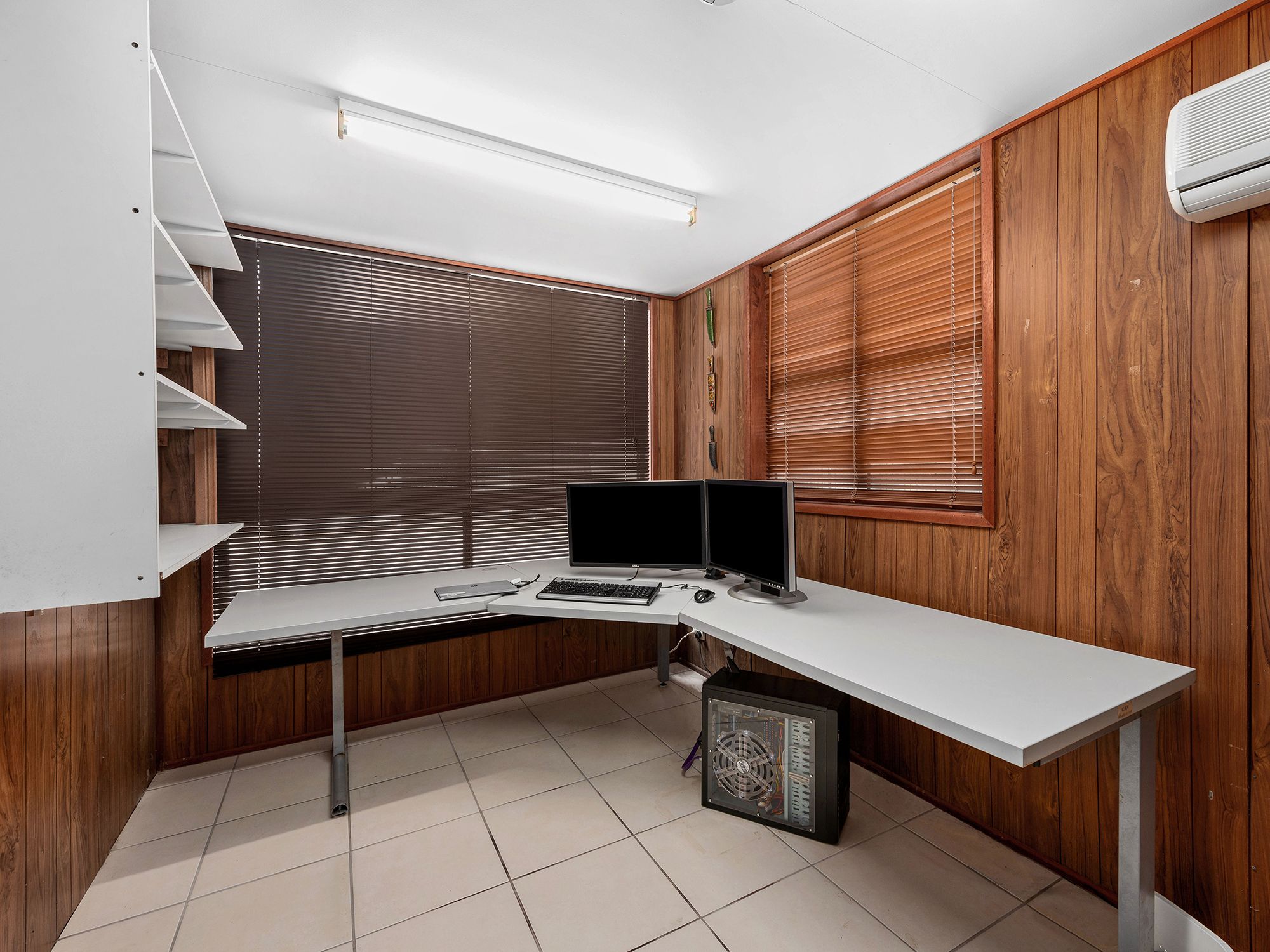 The ground level further includes a recreation room/playroom and a separate home office with air-conditioning.
