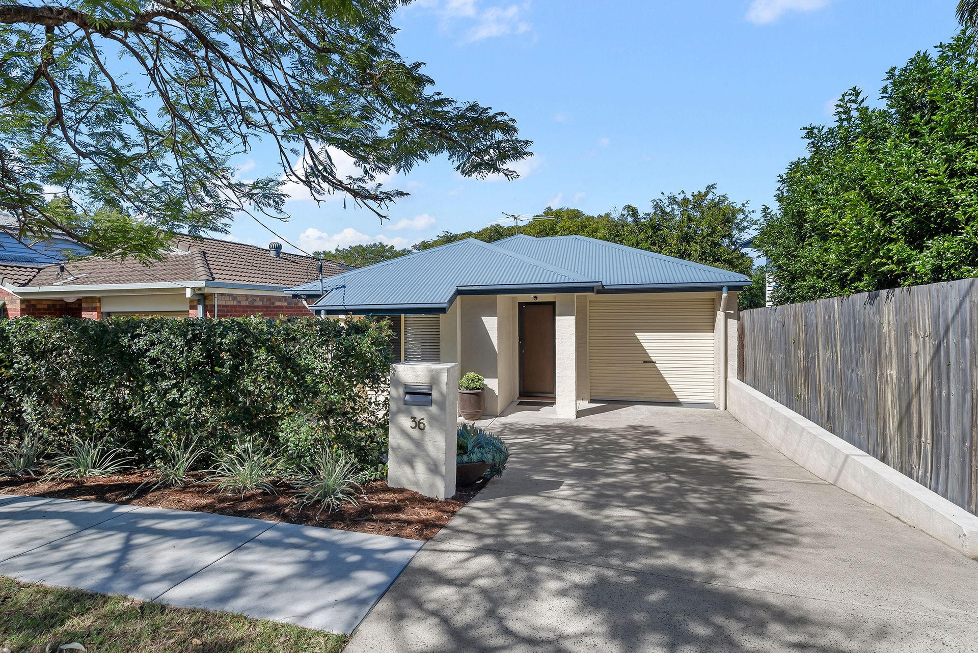 The rear timber deck leads off the living space and is shaded by a roof and privacy screens. Overlooking the fully fenced and level backyard with plenty of room for a trampoline and cubby house, parents can relax and supervise as kids play.