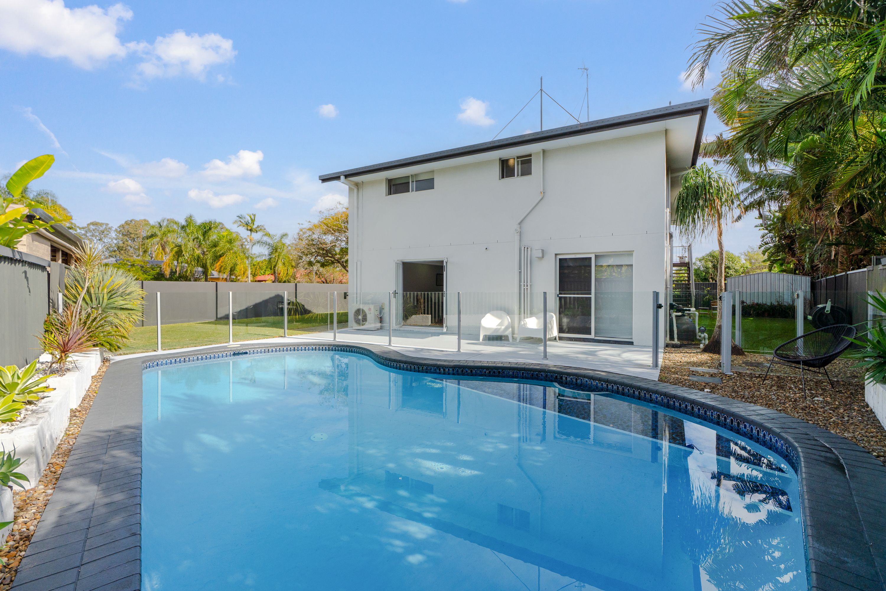 • Delightful dual living haven, brimming with heart, soul and charm • 641m2 block tucked away at the end of a peaceful, family-friendly cul-de-sac • Elevated to enjoy year-round breezes and just 1.8km from the beach • Carefree, comfortable interiors illuminated in beautiful natural light • Spacious kitchen with a surplus of storage • Sunlit living and dining zones • Four light-filled bedrooms upstairs, including a master suite with ensuite • Modernised main bathroom with a freestanding bath • Self-contained lower-level includes a modern kitchen, living and dining area, ensuite bedroom with walk-in robe • Sparkling pool plus flat, fully fenced front and rear yards • Quaint front patio with a leafy outlook - watch kids play in the front yard or ride bikes in the street • Large Garden shed • Double garage plus off-street parking for additional vehicles, a caravan or boat • Laundry and an additional bathroom downstairs • Solar panels • Air-conditioning and ceiling fans • 600m from Mallawa Sports Complex and Melaleuca Dog Park • Walk to Palm Beach Primary and Palm Waters precinct with cafes, supermarket, shops and services • Approx 2km to pristine Tallebudgera Creek, 2.5km from the Palm Beach cuisine scene and 5km from vibrant Burleigh