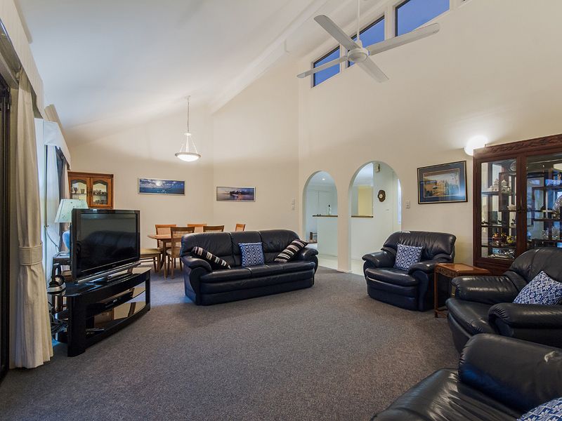 This waterfront home offers: * Three spacious bedrooms, two with built in robes with room for queen size beds and plenty of wardrobe space * Master room surrounded with water views, ensuite and walk in robe * Formal living and dining area with raked ceilings opening onto timber decking overlooking the water * Galley style kitchen with gas cooking, walk in pantry and water views opening onto family room with bar * Ample storage space throughout the home, separate laundry * Ceiling fans throughout * 8m x 3.5m Pontoon and boat davitts, electric winch * Double lock up garage with a separate workshop, office and room for any caravan up to 20 feet * Private in ground salt water pool, solar water heating * Built in double carport, intercom, security system * 10,000 litre underground concrete tank plus 3000 litre tank * 20m water frontage NE facing * council rates $1229 approx for 6 months and water rates $742 for 6 months