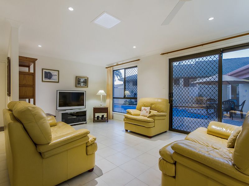 Located on the water in beautiful Paradise Point this three-bedroom home sits on a grand 664sqm block with ample room for any future owners endeavours. With a home that has been meticulously cared for this property is the apple in any purchaser's eye. Ease of access to the water via a new pontoon gives residents the pleasures of enjoying boating, kayaking, fishing and an expansive deck, overlooking the water, provides all round relaxation with a fresh breeze off the canal. Offering raked ceilings, master room, formal dining and living with water views, ample room for storing cars, a caravan or boat this home ticks all the boxes, while remaining private at the end of a safe and quiet cul-de-sac. Situated in a sought after area this home is only minutes to Harbour Town, The Grand and local cafes and shops. This grand entertainer represents quite simply the very best that water front living has to offer.