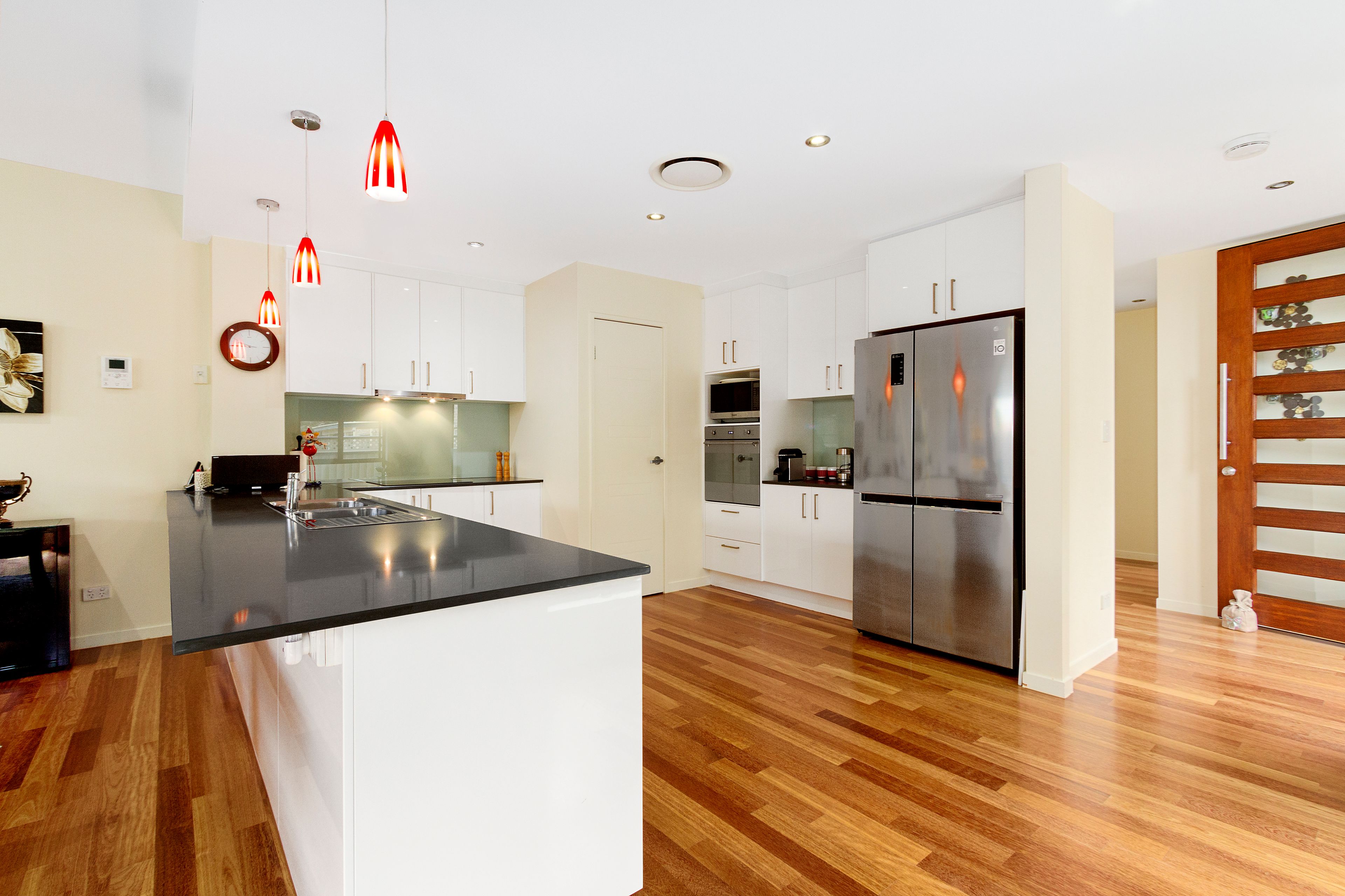 - Four Large Bedrooms, Master with Ensuite and balcony - Timber floors to lower level - Ducted Air-conditioning with four zones - Modern Kitchen with stone benchtops, Induction cooktop and pyrolytic (Self cleaning) oven - Oversized walk in pantry - Timber bi-folding doors with retractable flyscreens - Crim Safe Security screens fitted downstairs and to balcony sliding screen doors - Back to base alarm system - Separate laundry - Large amount of storage - Large outdoor entertainment area with retractable sunscreens - Extensive use of Timber and decking - giving a feeling of warmth - Double lock up garage with overhead storage - Low maintenance yard including rainwater tank