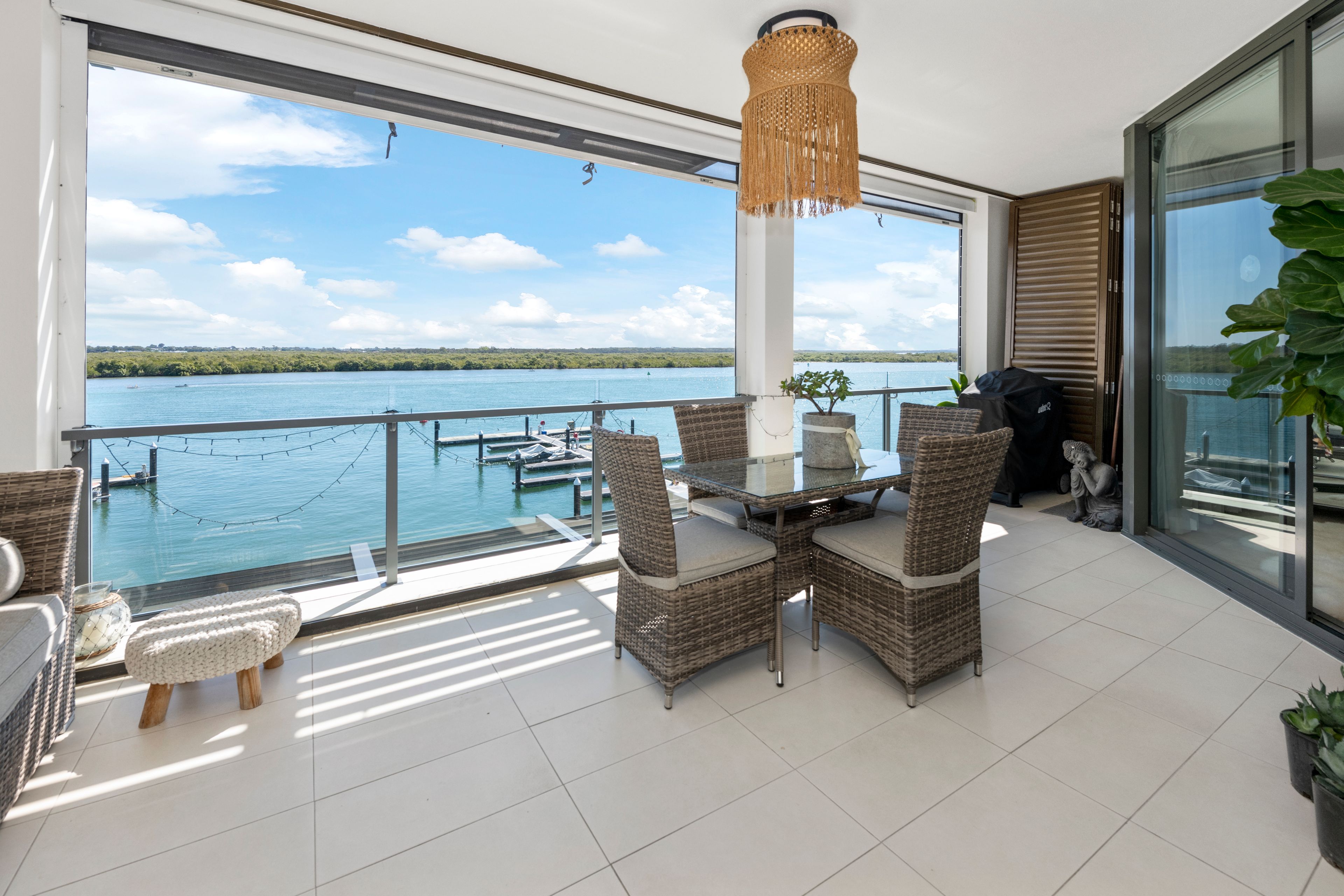 As a boatie's paradise, you can sit back on your spacious balcony, complete with shutters orretractable blinds and glass balustrade and watch the boats sail past or enjoy a sunset cocktail while taking in the stunning water views.