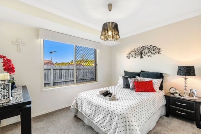 Features include: Bright spacious and decorated in neutral tones Quality fixtures and fittings throughout 4 Bedrooms carpeted, 2 modern bathrooms including ensuite to master Spacious lounge with feature wall and Stunning floor tiles through living areas Large kitchen with stainless steel appliances, abundance of cupboards, large fridge space and Caesar stone bench tops Ceiling fans, security screens, garden shed Large under cover entertaining patio Large In-ground pebble-crete pool No through road location Double lock up garage Land size 688m2 on easy maintenance block