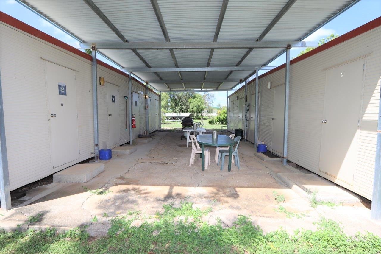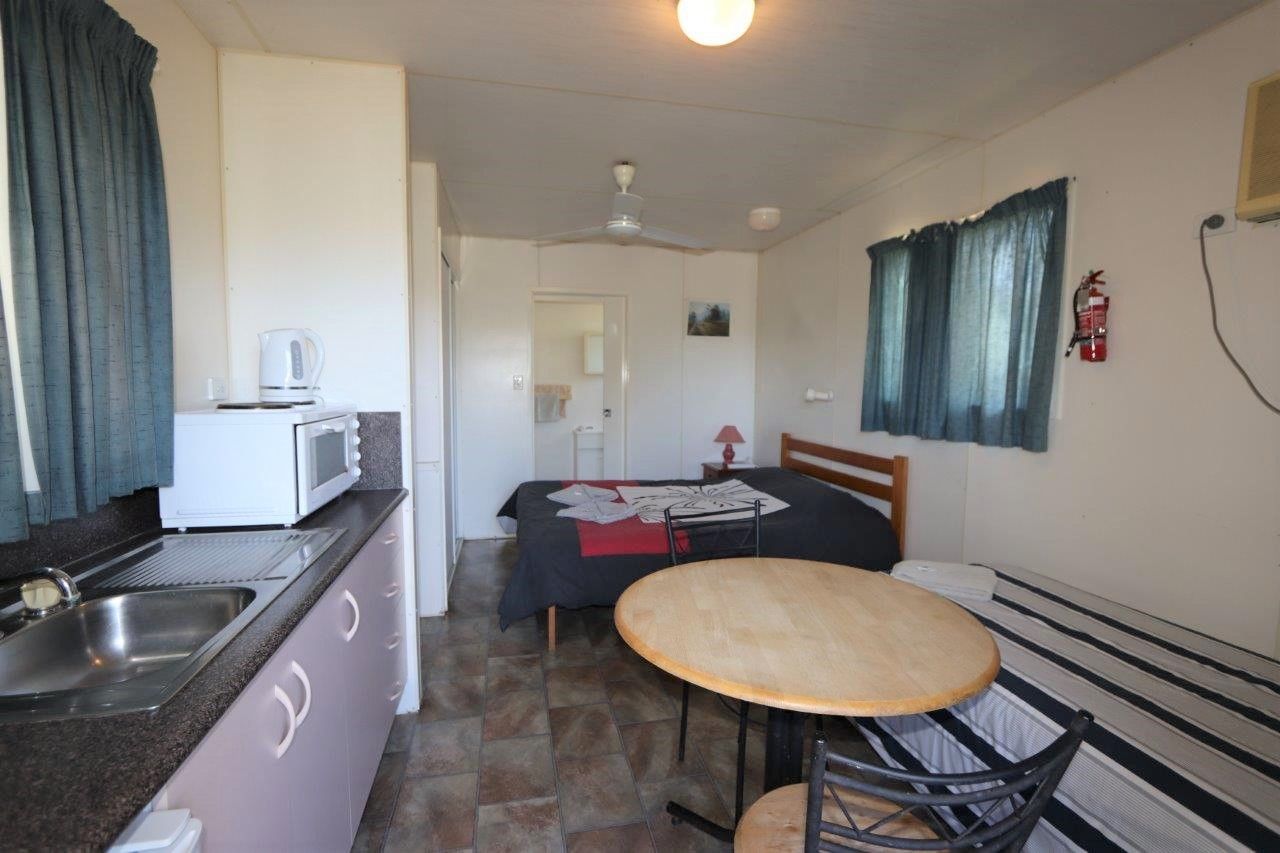 • Powered van sites • 4 self-contained cabins • 10 air-conditioned rooms accommodation - Dongas • 2 Motel units • Camp kitchen with fridge, sink and BBQ • Laundry • Communal toilet/shower block - Ladies and Gents • In-ground pool • Café/kiosk with attached 1 bedroom owner accommodation • 4 Bay Colorbond shed