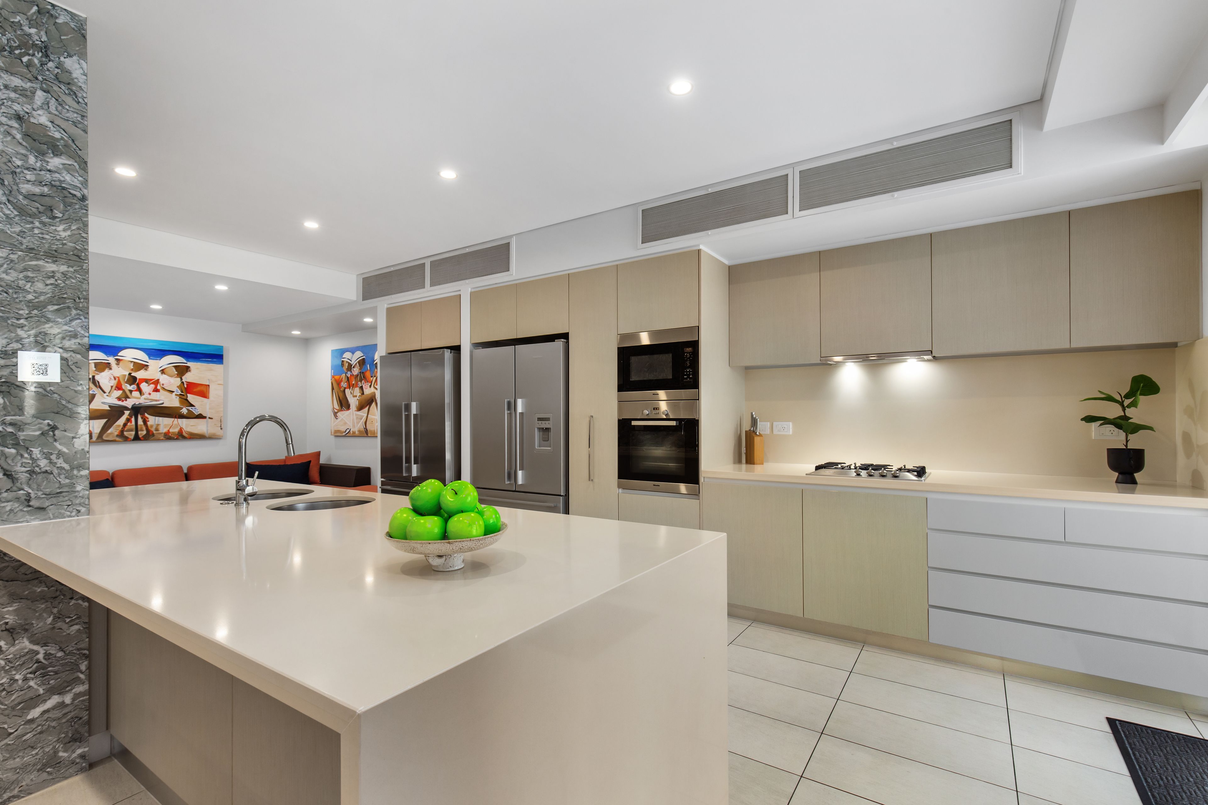 What makes this apartment truly special is the rare 459 sqm of size and space it offers, with 5 master bedrooms all featuring ensuites with quality finishings that create the feel of individual private sanctuaries. The primary suite enjoys the natural glow and coastal breezes via the glass sliding doors, leading directly to the balcony and an outdoor spa bath. A second feature bedroom connects to the balcony with rooftop views and showcases a soaking tub and walk in robe.