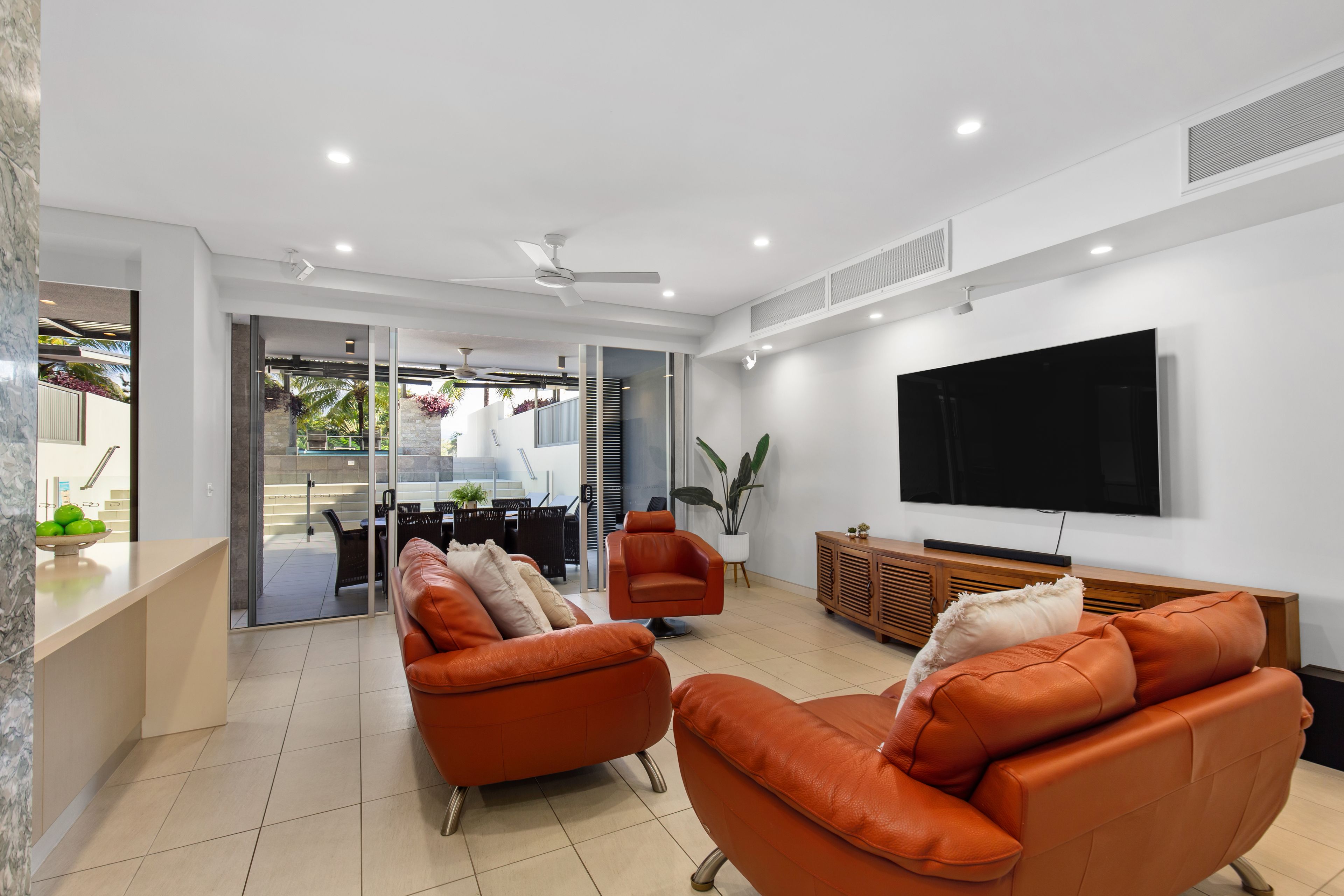 At a glance: • Open plan living with an expansive terrace • 459 sqm of living and space over 2 levels • Indoor and outdoor kitchens • Private plunge pool and spa • Luxurious bedroom suites • Unbeatable location • 140m to Four Mile Beach