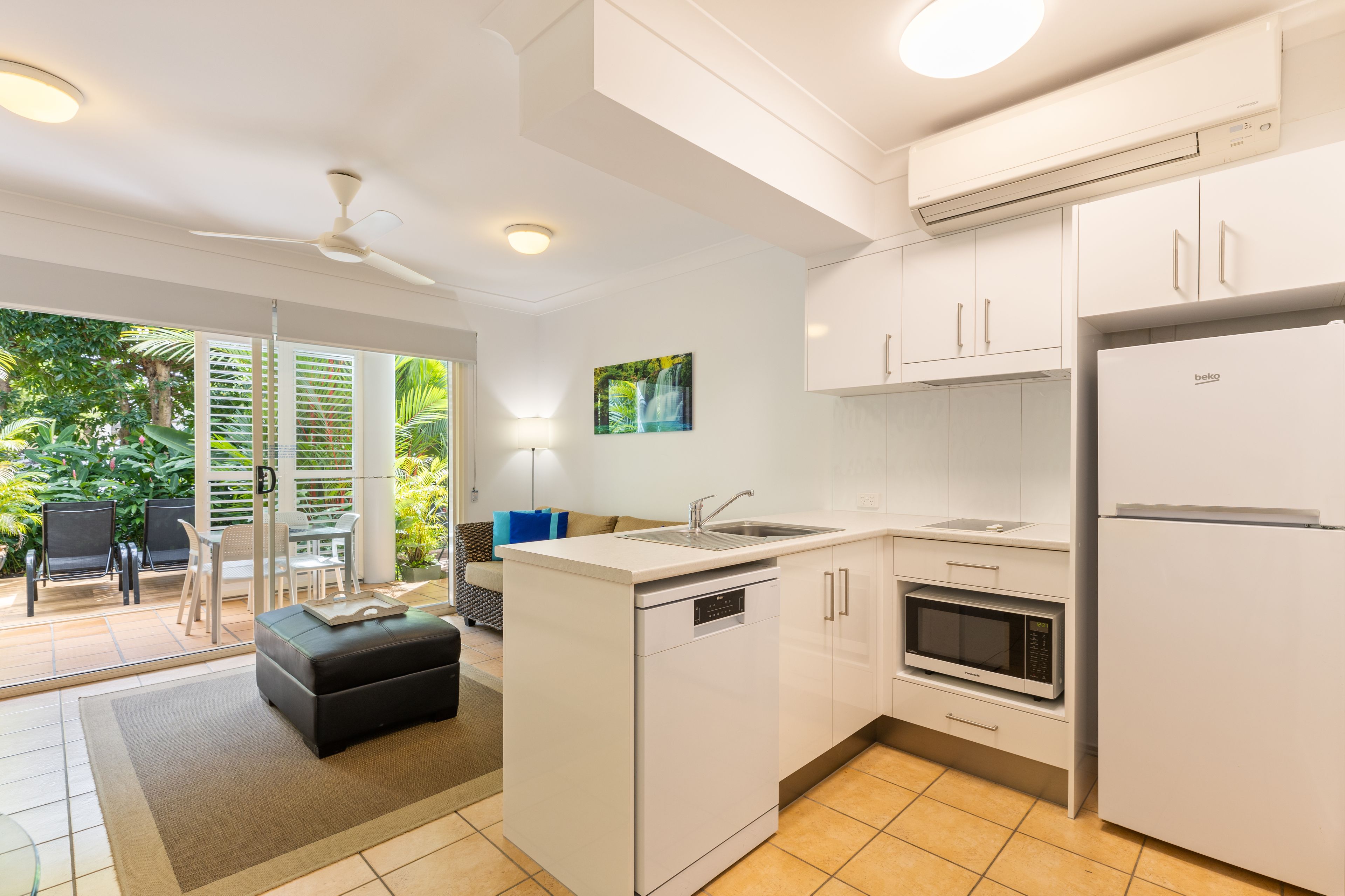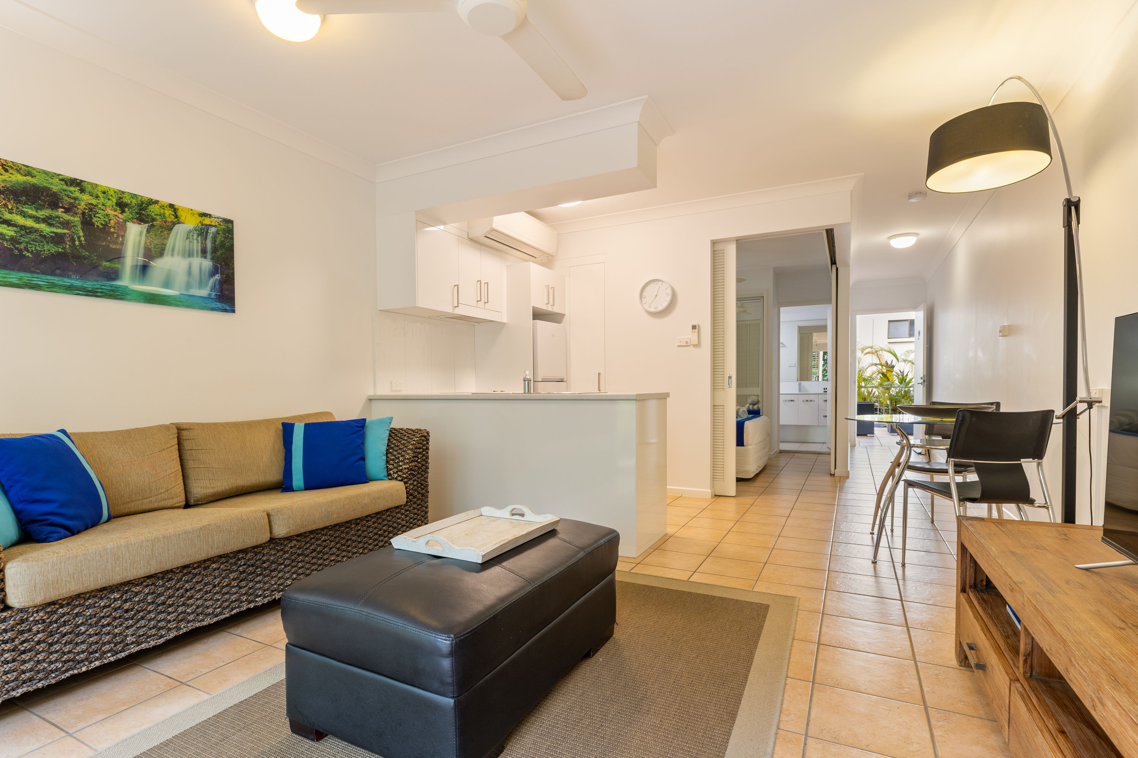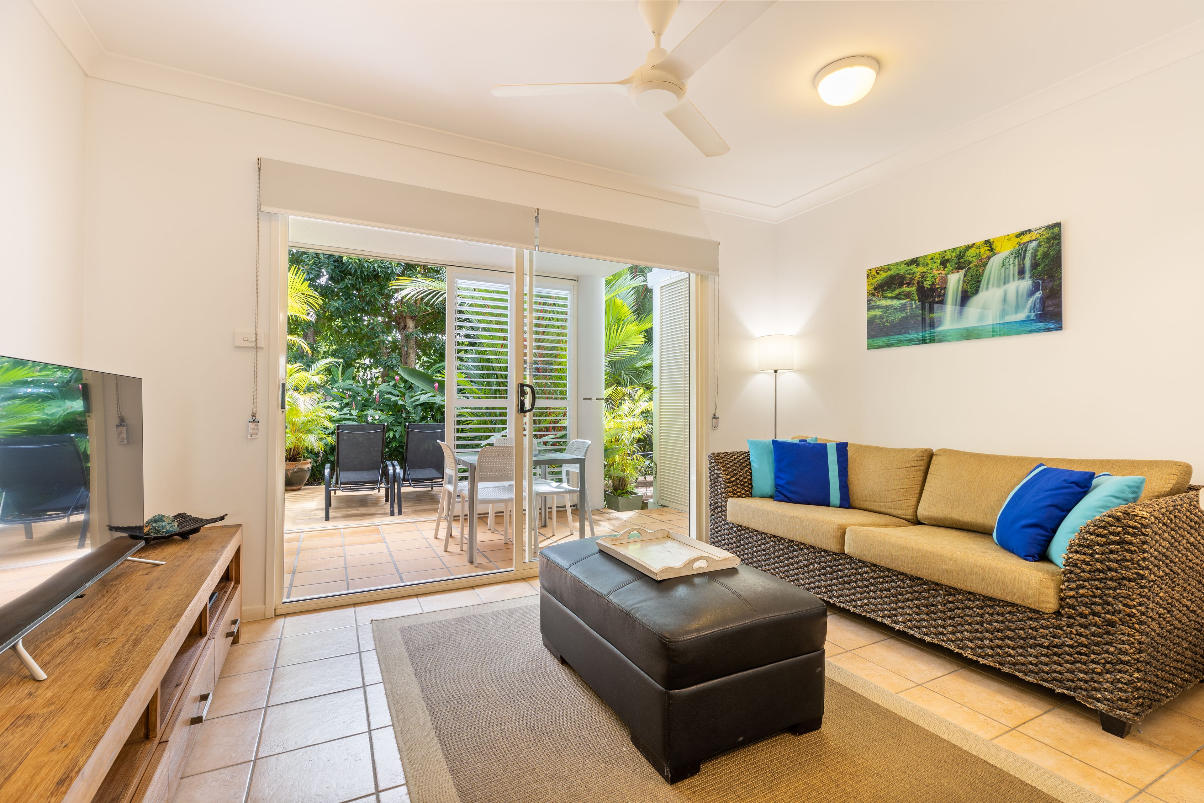 Benefiting from a generous outdoor deck space for sun lounges, the blend of tropical indoor to outdoor living is seamless. The apartment offers open plan living with a new kitchen, showcasing white cabinetry keeping the space bright and open. The private bedroom has ample storage with built in mirrored robes, and an ensuite that has recently been remodelled with contemporary timeless design. The location is hard to beat within the 'golden triangle' of Port Douglas. No need to pack the car keys, simply wander to the cosmopolitan retail stores, cafes and renowned restaurants or soak up the sun, surf, sand and ocean sounds of Four Mile Beach.