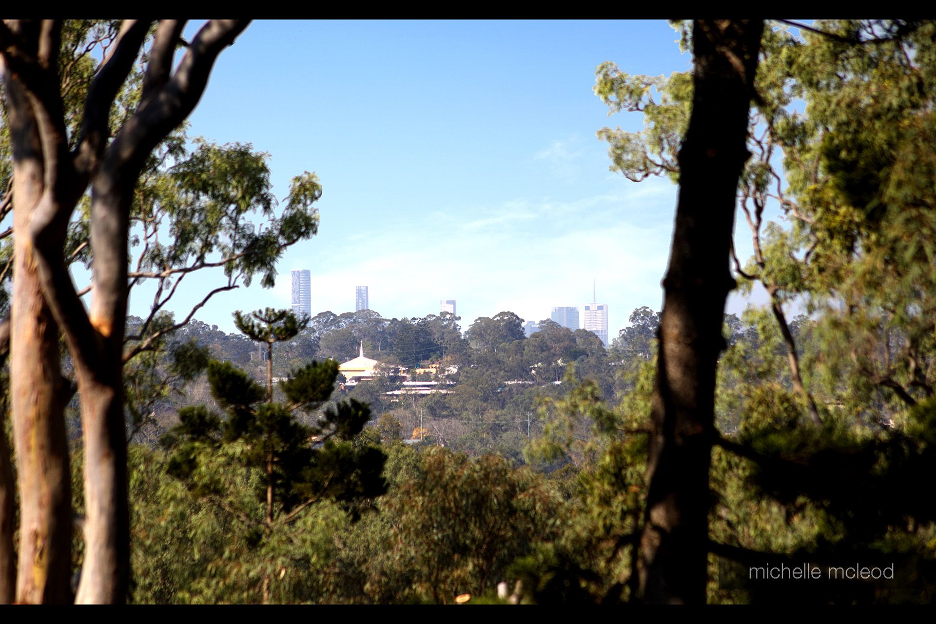 The land is very usable and very wide on top of the ridge with a rainforest backdrop & through the trees you can see the city lights and buildings. This view could also be expanded for more of the city and Mt Coot-tha to be captured. As the land gently slopes down the hill there are also large open grass areas amongst the established cool trees. These trees collect the north-east breezes and the hot summer days are cooler on the hilltop because of them.