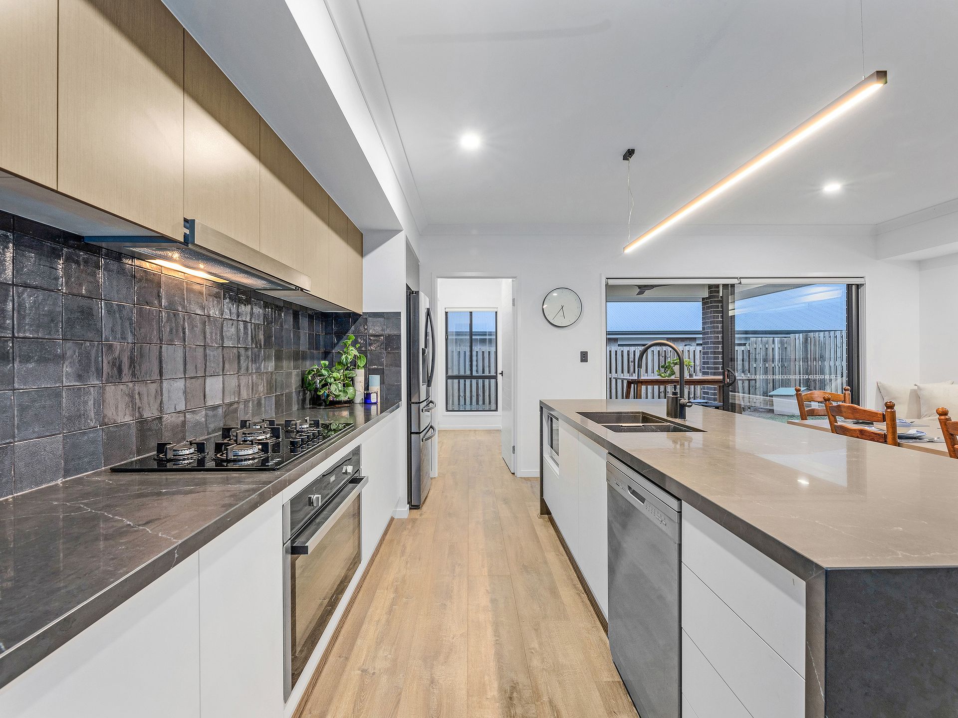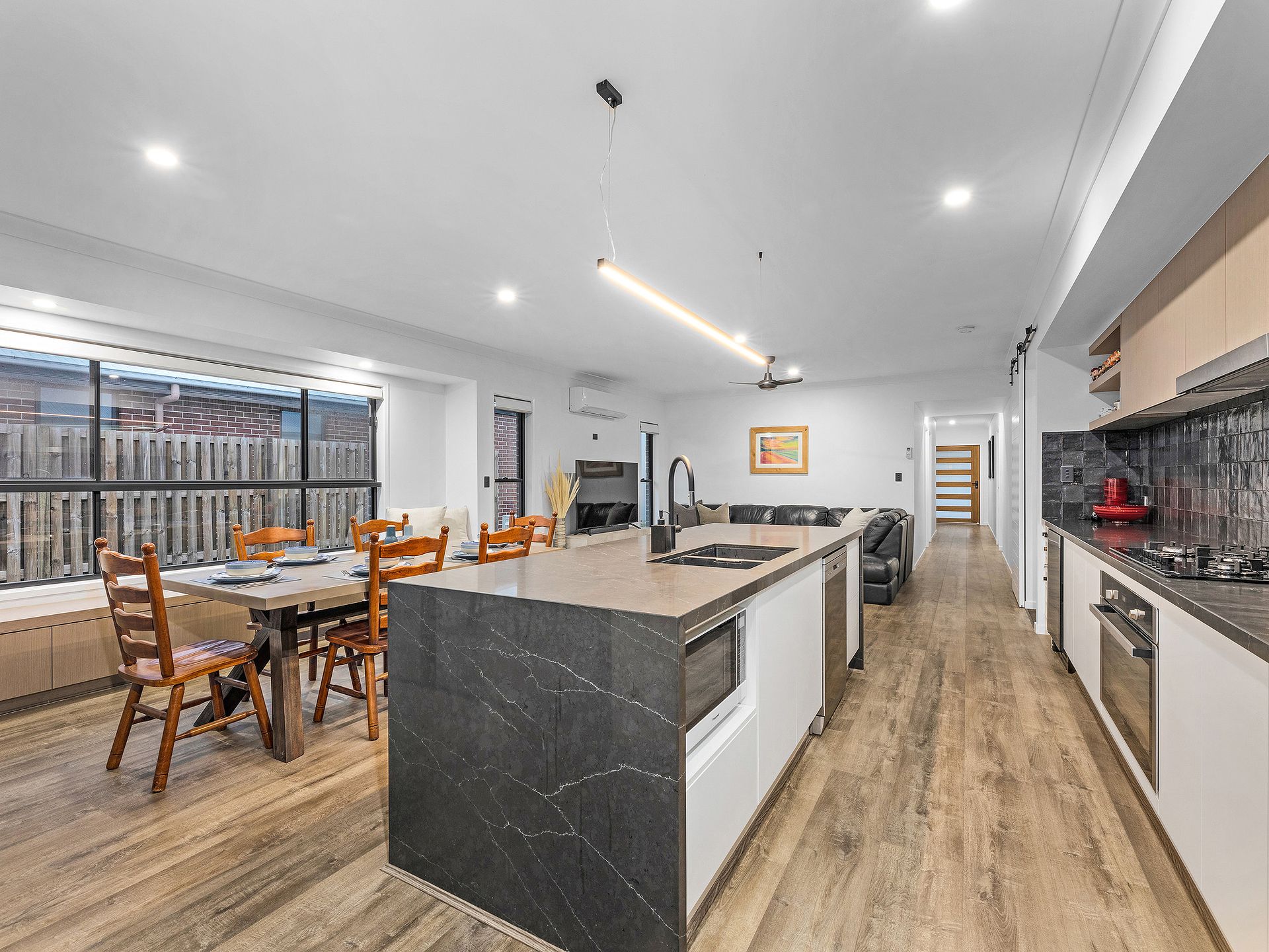 Open plan living is immensely popular, and your new spacious and breezy living, dining and kitchen areas are no exception. What's more, the oversized modern kitchen is an absolute dream for the home chef, boasting a huge upgraded Caeserstone island bench with waterfall edges, a 5 burner gas cooktop and oven, dishwasher, impressive walk-in pantry and more storage than you'll know what to do with.